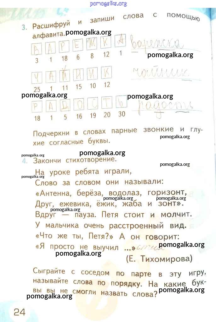 Готовые ответы - Русский язык 2 класс рабочая тетрадь Тихомирова Е.М. (к уч. Климановой) - часть 1. страницы 24
