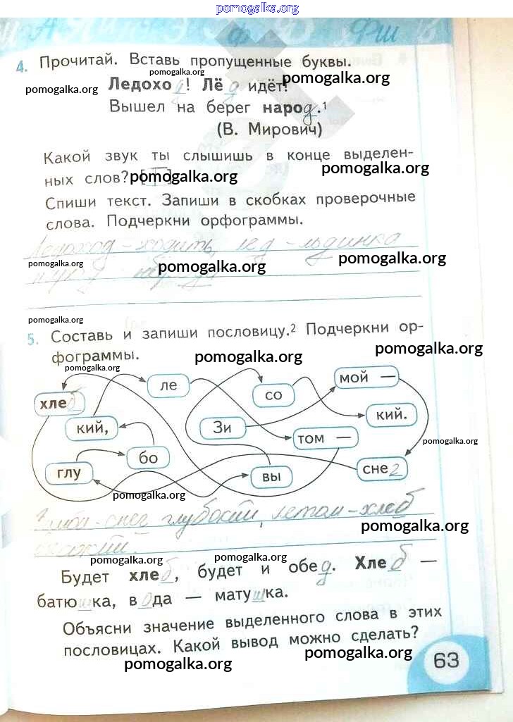 Готовые ответы - Русский язык 2 класс рабочая тетрадь Тихомирова Е.М. (к уч. Климановой) - часть 1. страницы 63