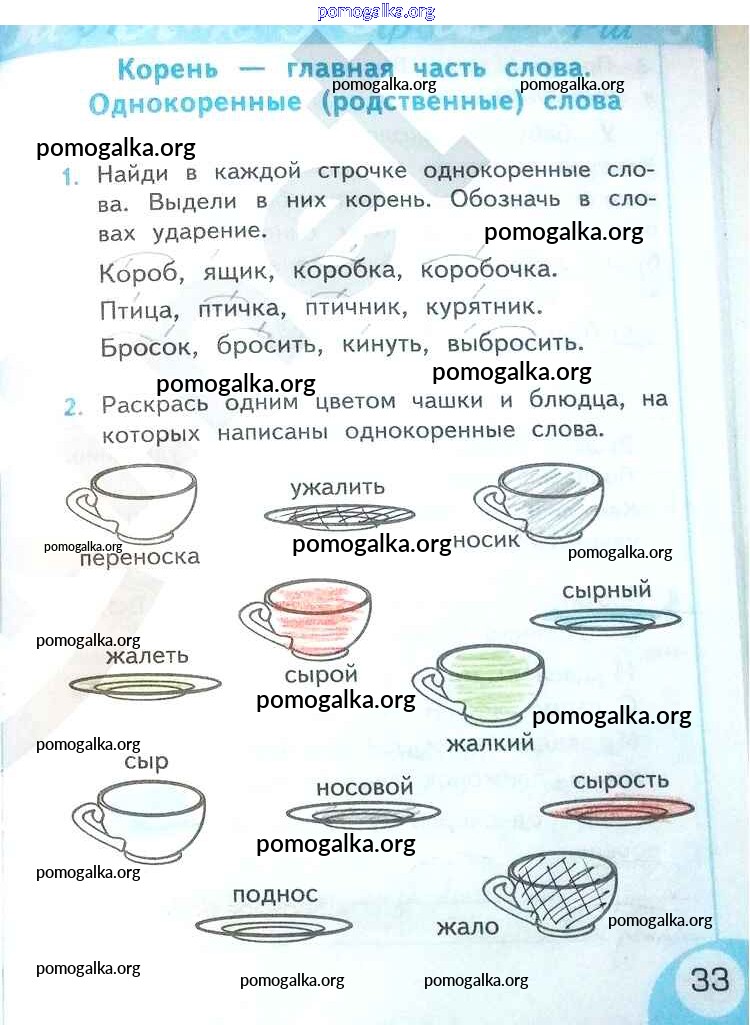 Готовые ответы - Русский язык 2 класс рабочая тетрадь Тихомирова Е.М. (к уч. Климановой) - часть 2. страницы 33