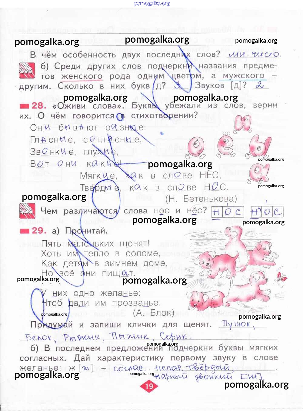 Готовые ответы - Русский язык 2 класс рабочая тетрадь Яковлева С.Г. - часть 1. страница 19