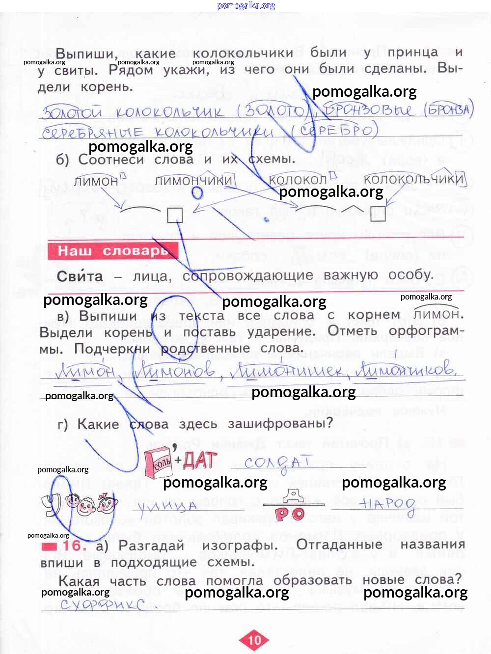 Готовые ответы - Русский язык 2 класс рабочая тетрадь Яковлева С.Г. - часть 2. страница 10
