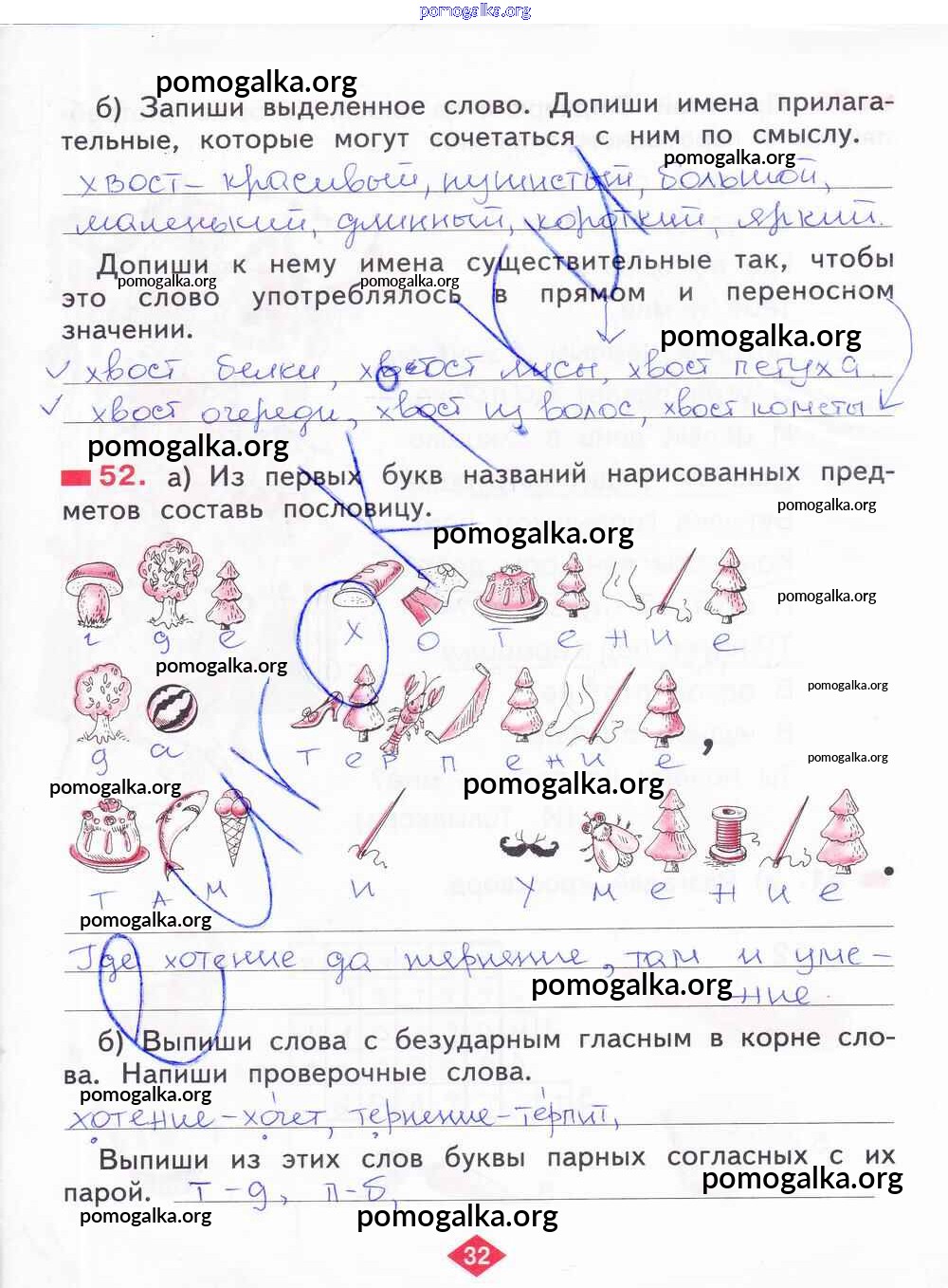 Готовые ответы - Русский язык 2 класс рабочая тетрадь Яковлева С.Г. - часть 3. страница 32