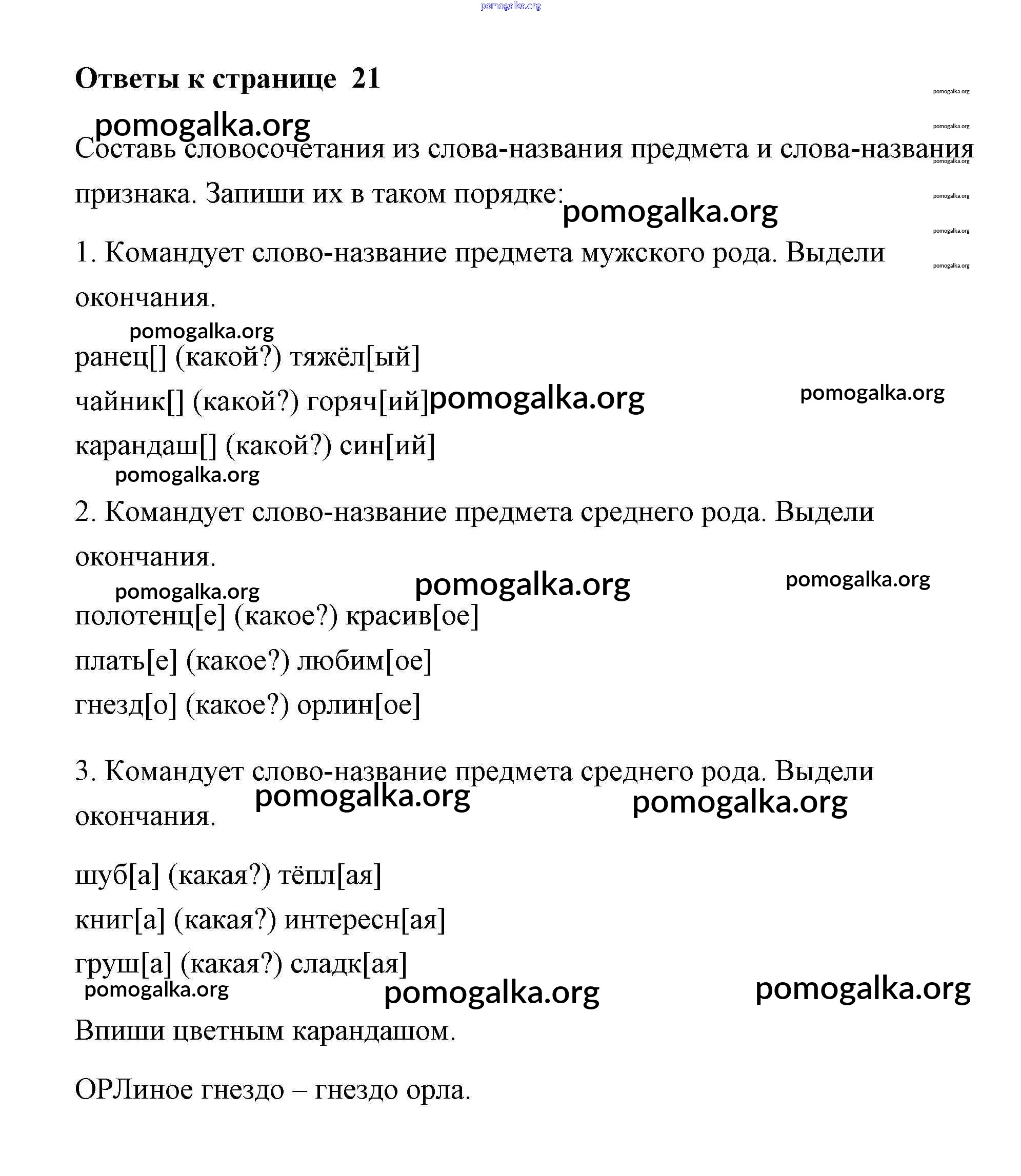 Готовые ответы - Русский язык 2 класс Тетрадь для самостоятельной работы Байкова Т.А. - часть 1. страница 21