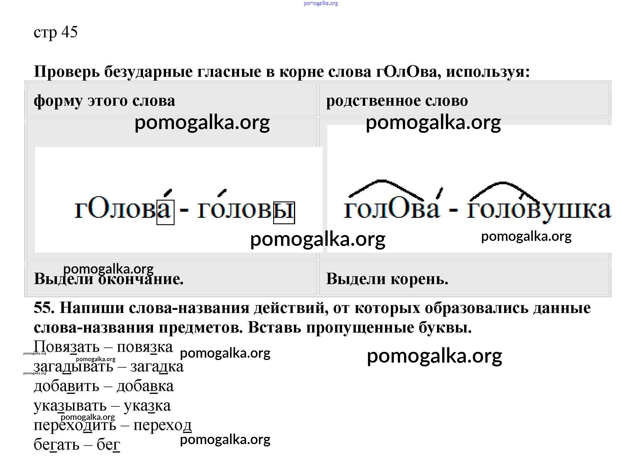 Готовые ответы - Русский язык 2 класс Тетрадь для самостоятельной работы Байкова Т.А. - часть 1. страница 45