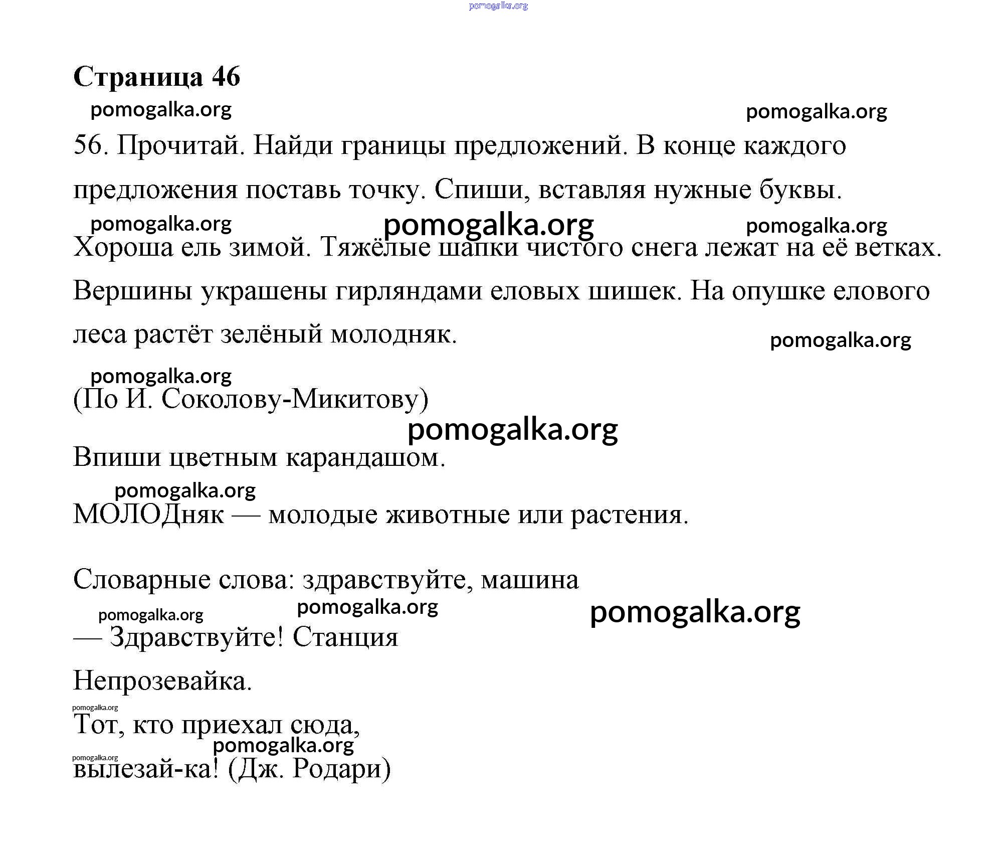 Готовые ответы - Русский язык 2 класс Тетрадь для самостоятельной работы Байкова Т.А. - часть 1. страница 46