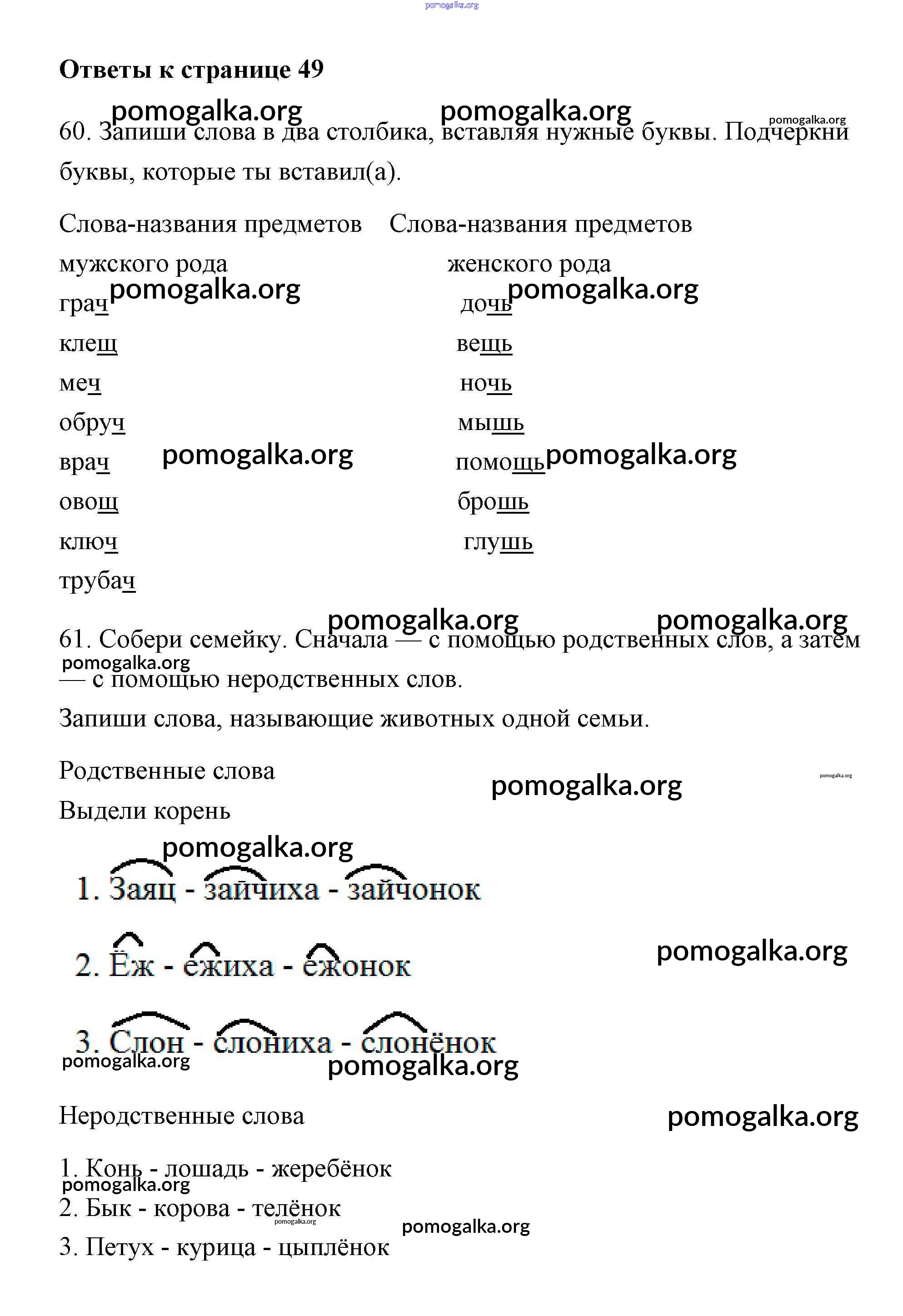 Готовые ответы - Русский язык 2 класс Тетрадь для самостоятельной работы Байкова Т.А. - часть 1. страница 49
