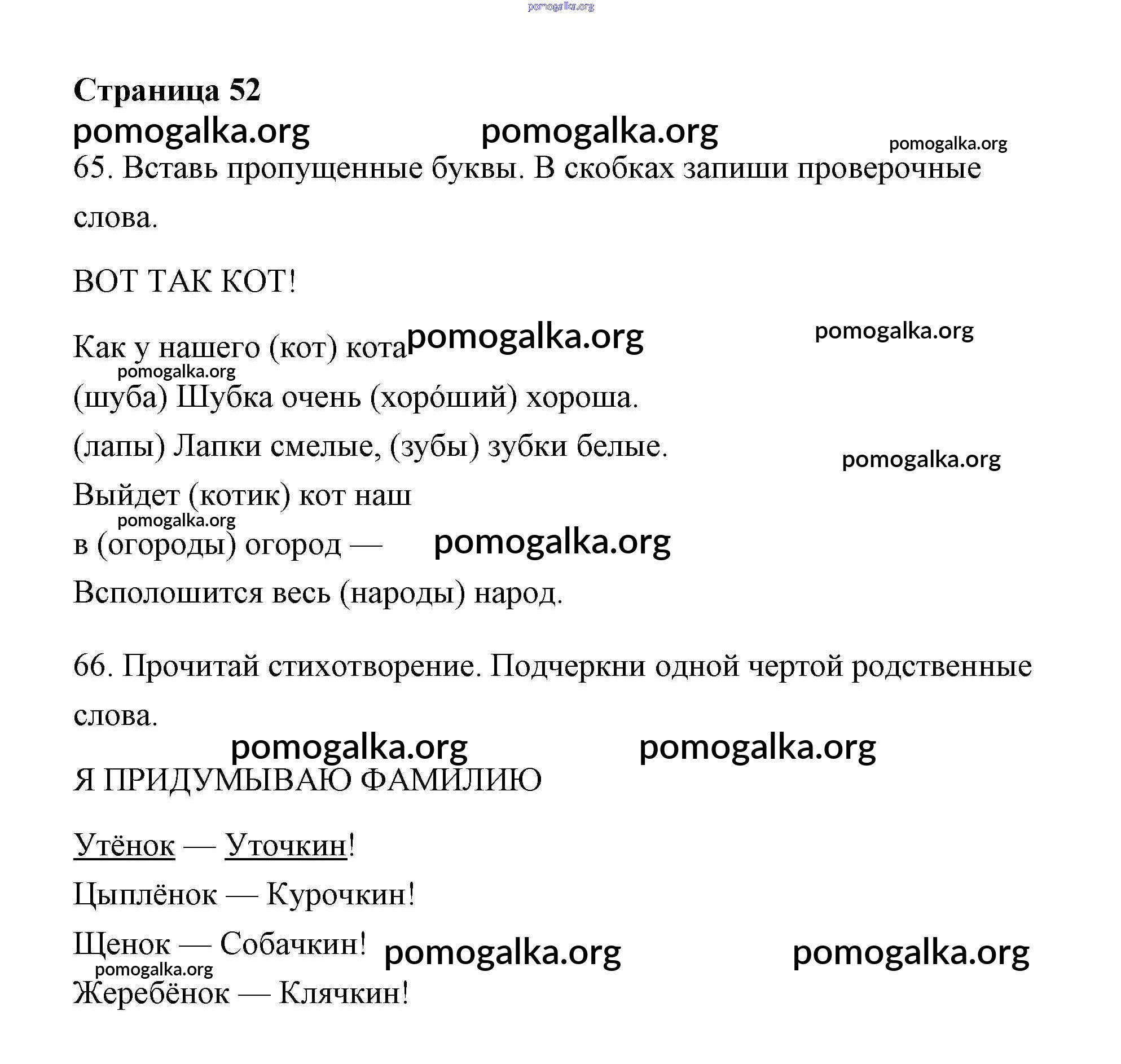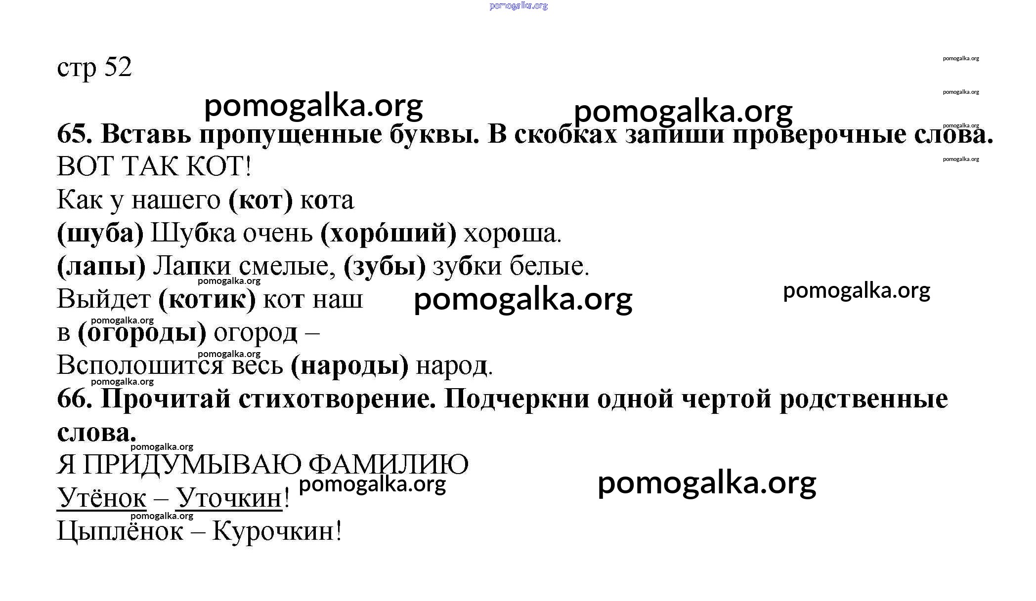 Готовые ответы - Русский язык 2 класс Тетрадь для самостоятельной работы Байкова Т.А. - часть 1. страница 52