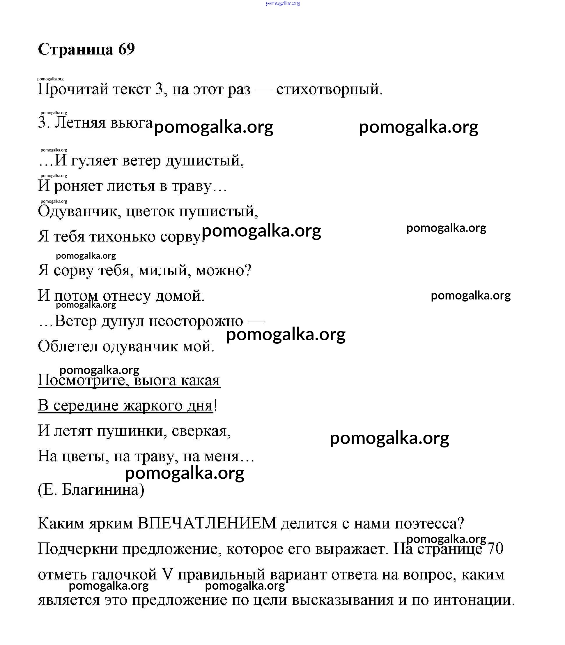 Готовые ответы - Русский язык 2 класс Тетрадь для самостоятельной работы Байкова Т.А. - часть 1. страница 69