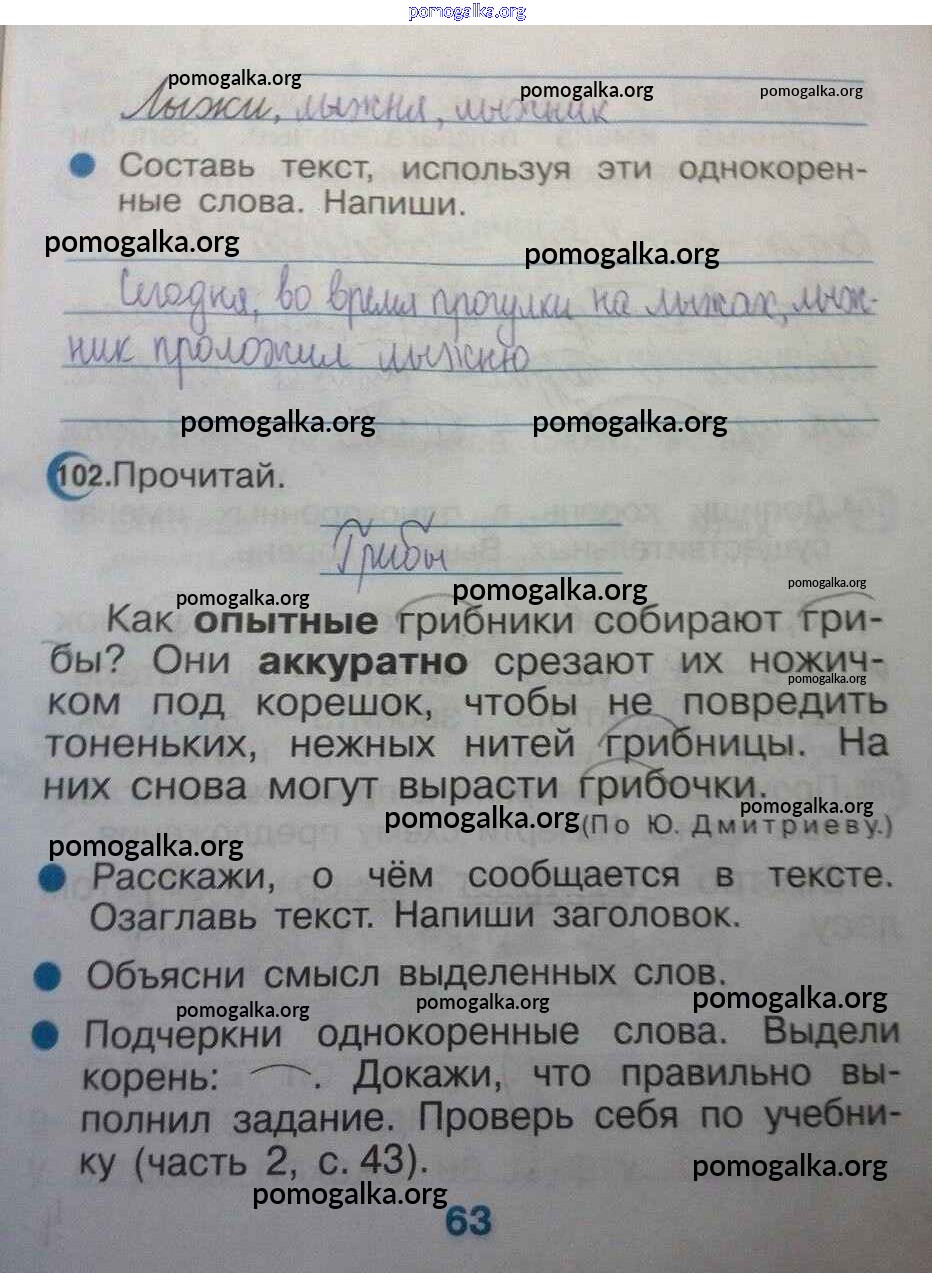 Готовые ответы - Русский язык 2 класс Тетрадь для упражнений Рамзаева Т.Г. - страница 63