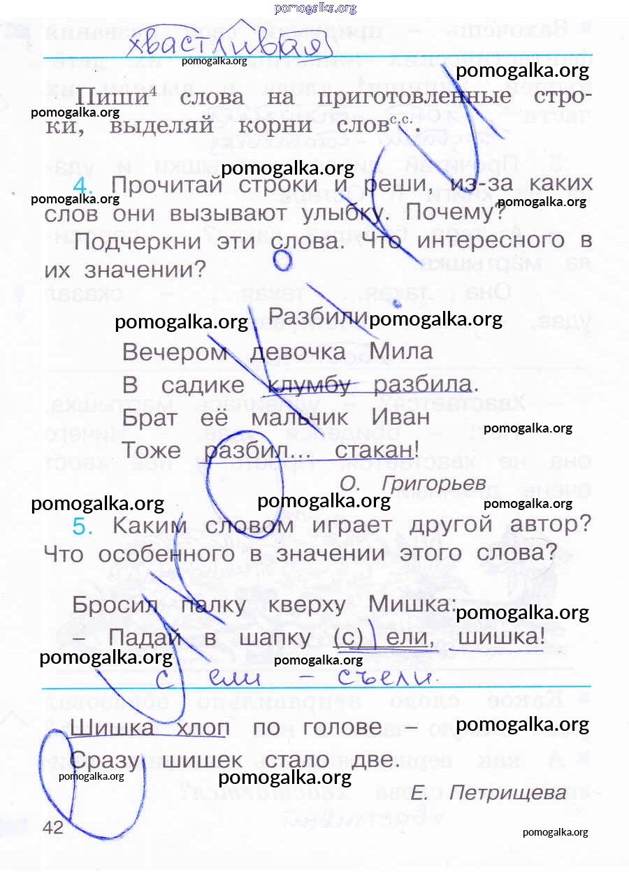 Готовые ответы - Русский язык 2 класс К тайнам нашего языка: Тетрадь-задачник Соловейчик М.С. - часть 2. страница 42
