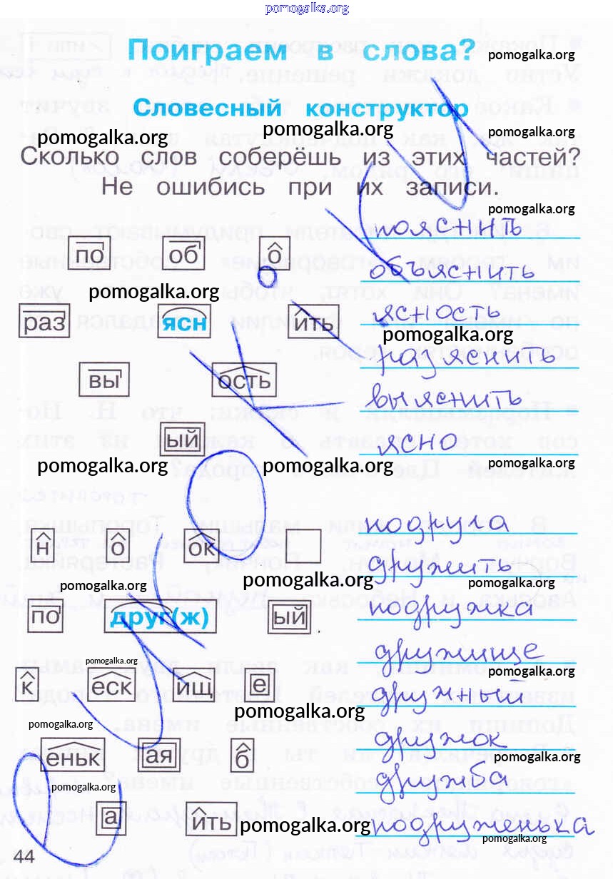 Готовые ответы - Русский язык 2 класс К тайнам нашего языка: Тетрадь-задачник Соловейчик М.С. - часть 3. страница 44