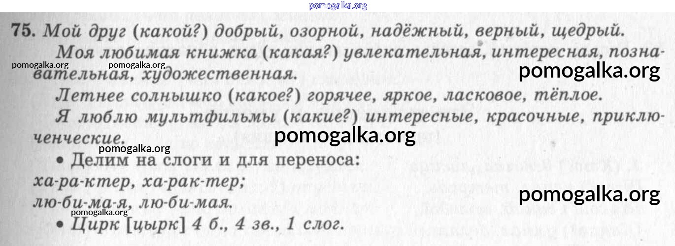Готовые ответы - Русский язык 2 класс Бунеев Р.Н. - упражнение № 75