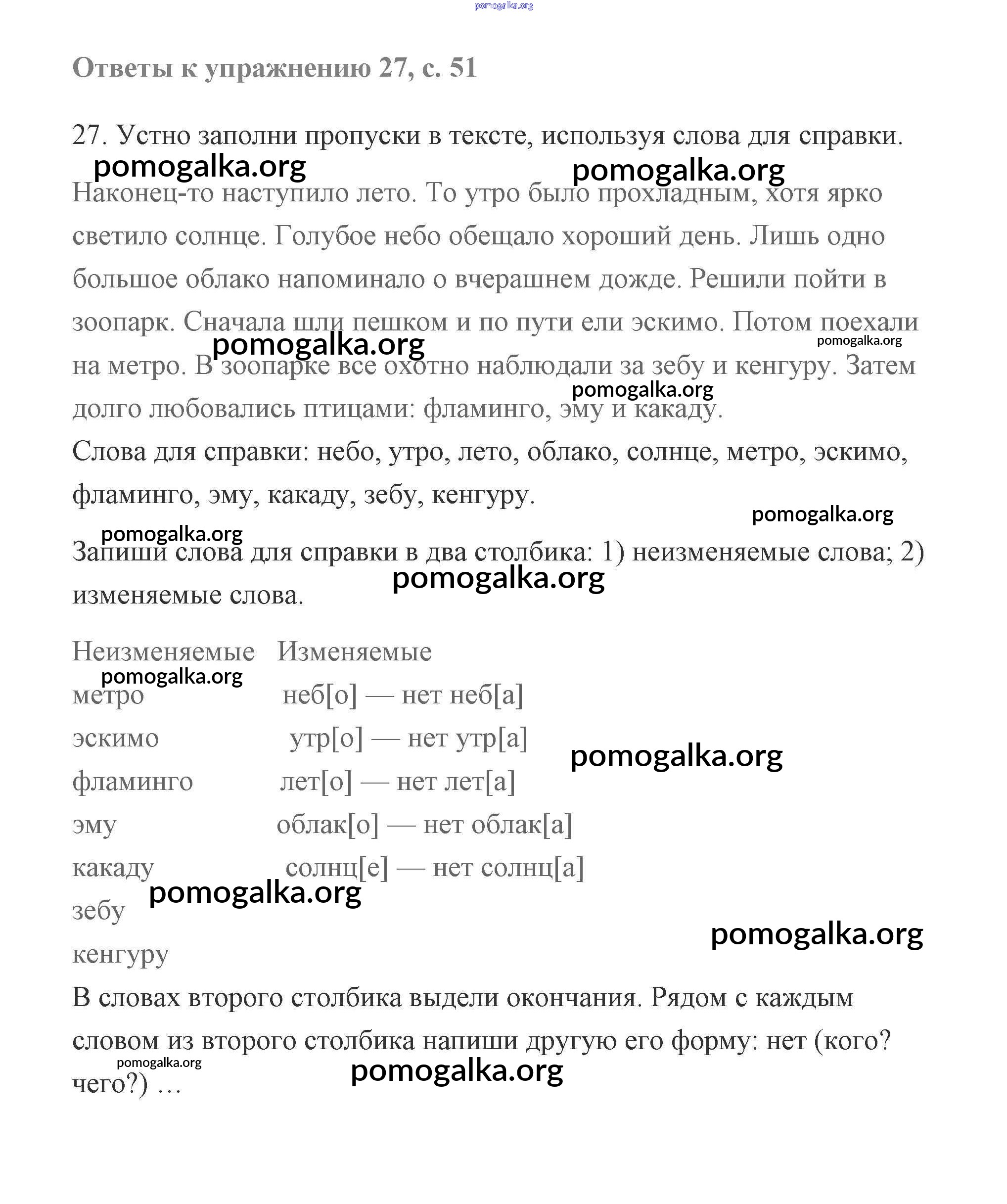 Готовые ответы - Русский язык 2 класс Чуракова - часть 1 (упражнение) 27