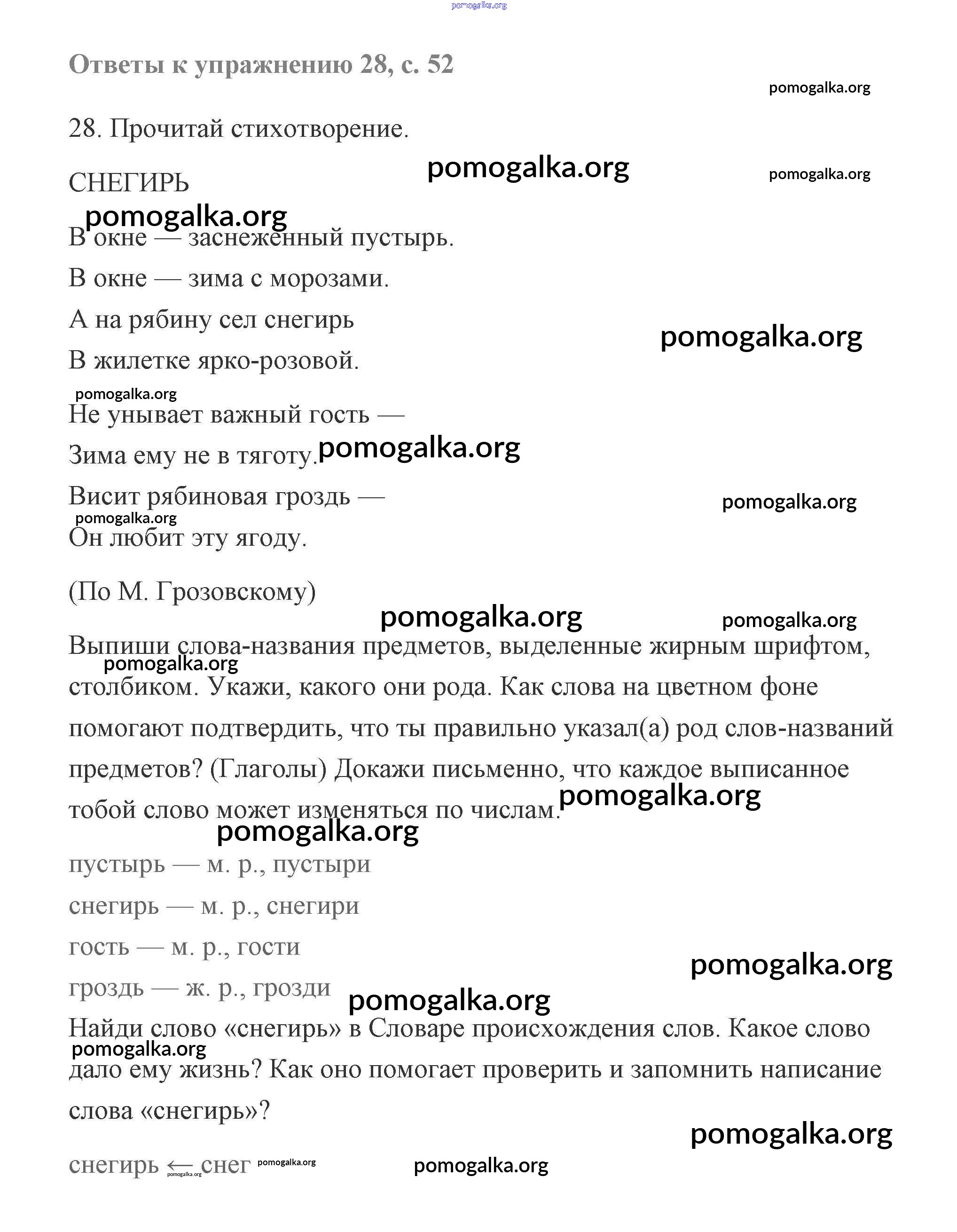 Готовые ответы - Русский язык 2 класс Чуракова - часть 1 (упражнение) 28