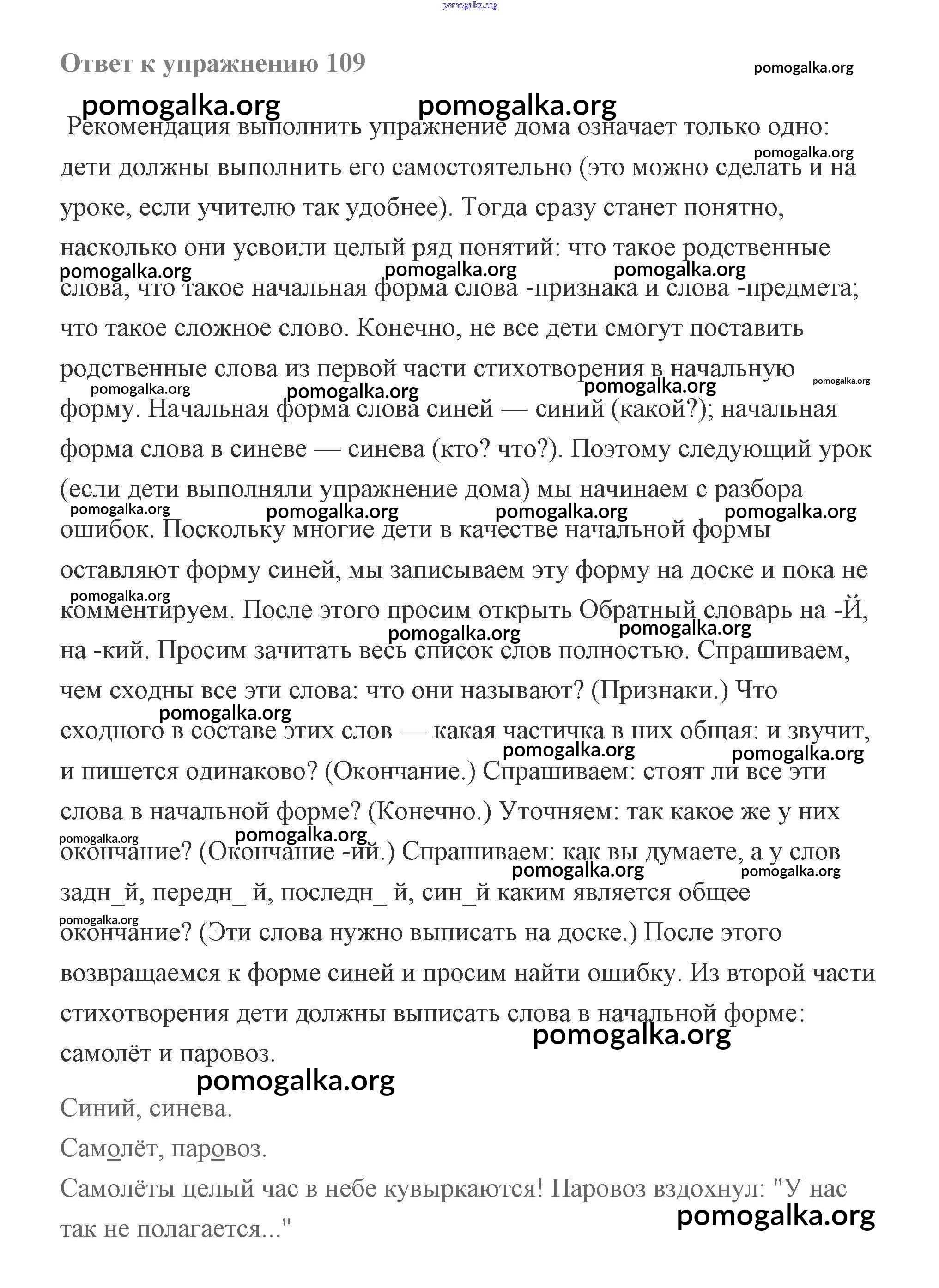 Готовые ответы - Русский язык 2 класс Чуракова - часть 3 (упражнение) 109
