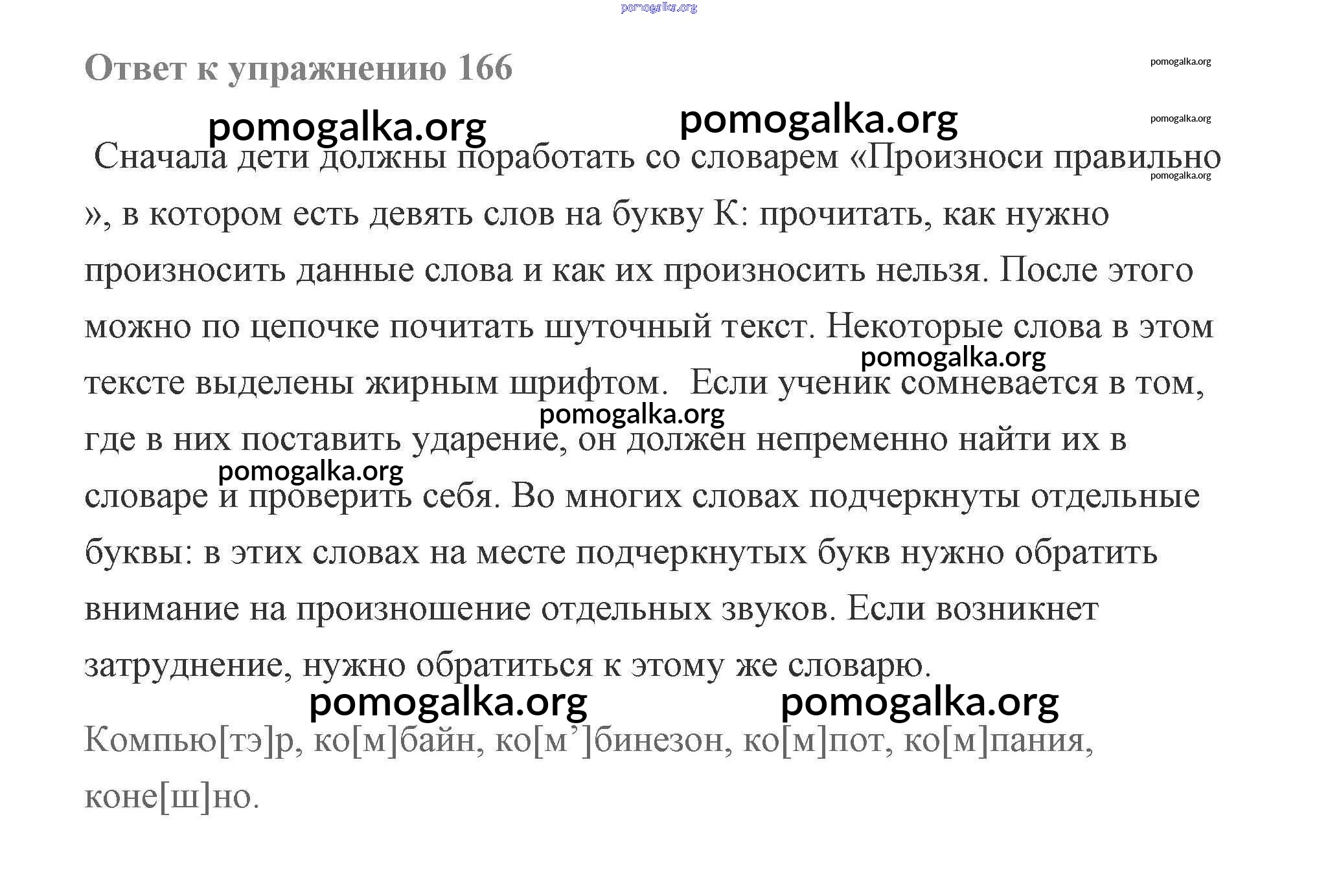 Готовые ответы - Русский язык 2 класс Чуракова - часть 3 (упражнение) 166