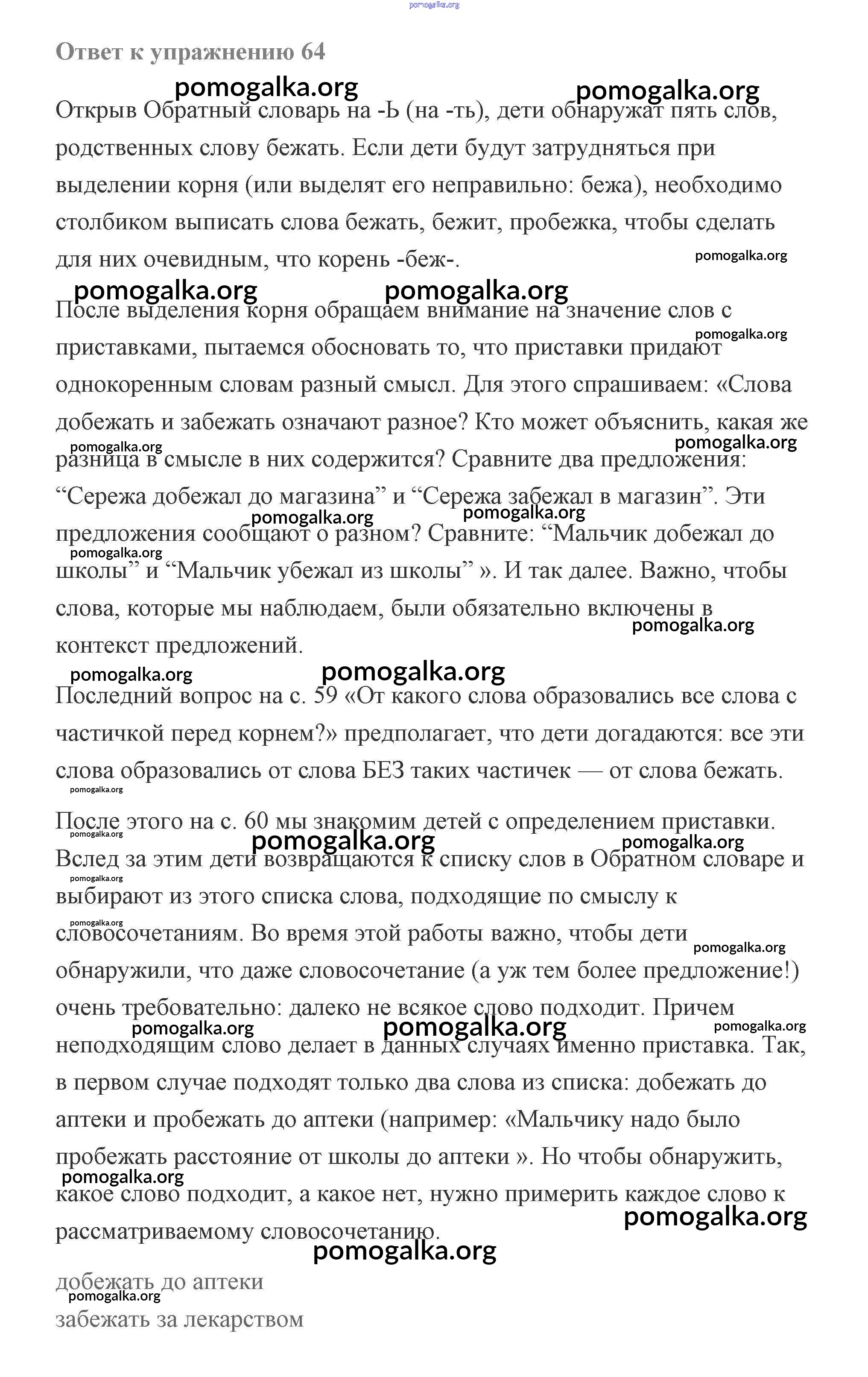 Готовые ответы - Русский язык 2 класс Чуракова - часть 3 (упражнение) 64