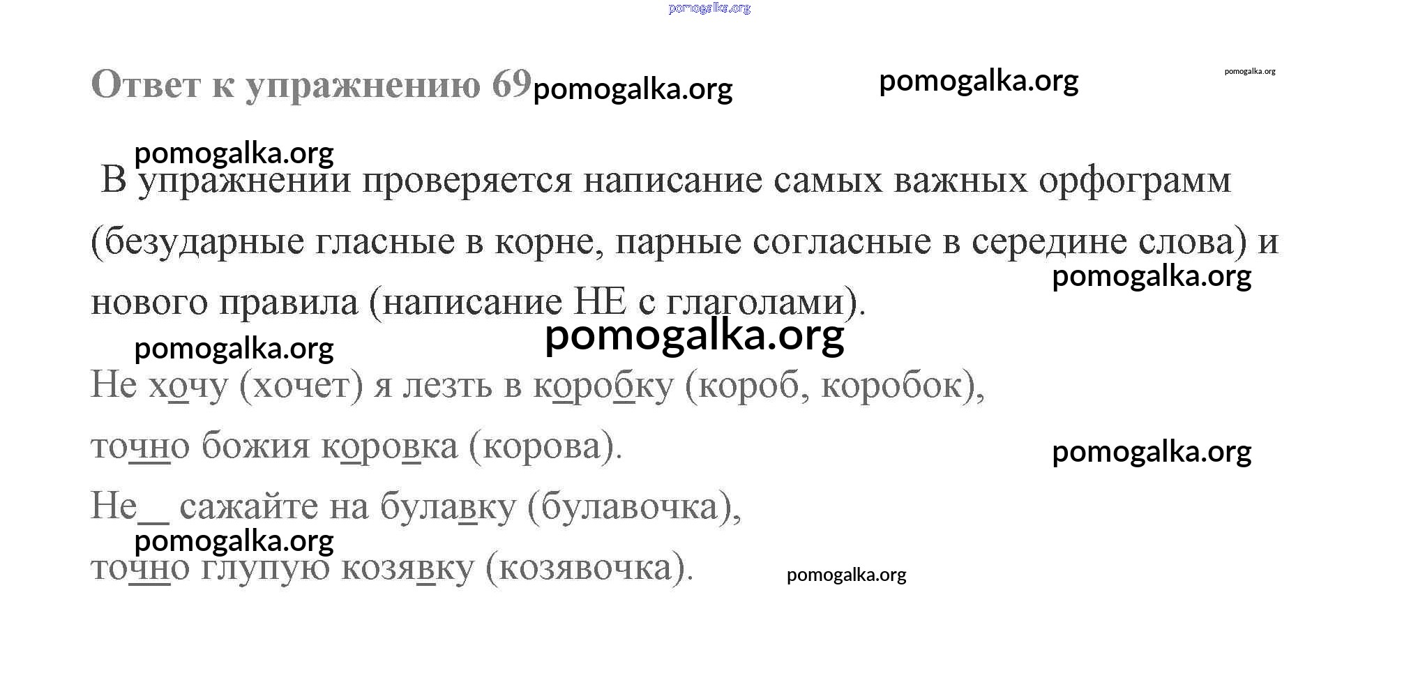 Готовые ответы - Русский язык 2 класс Чуракова - часть 3 (упражнение) 69
