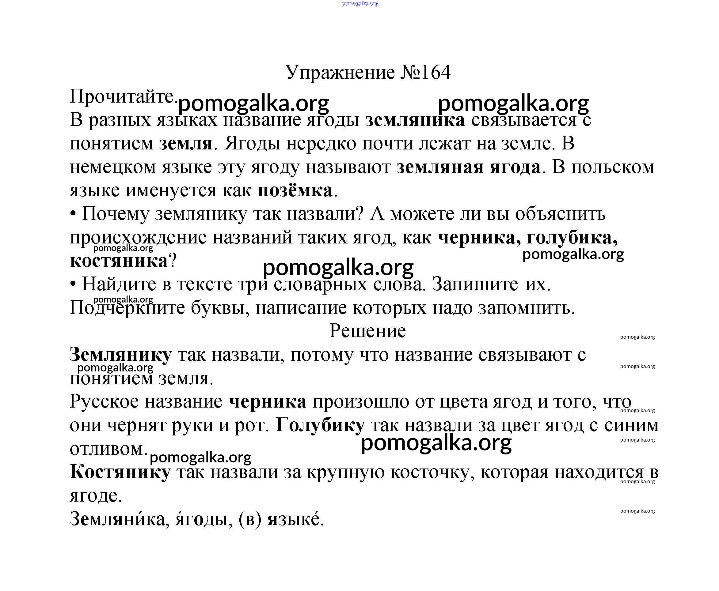 Готовые ответы - Русский язык 2 класс Канакина В.П. - часть №1 (упражнение) 164