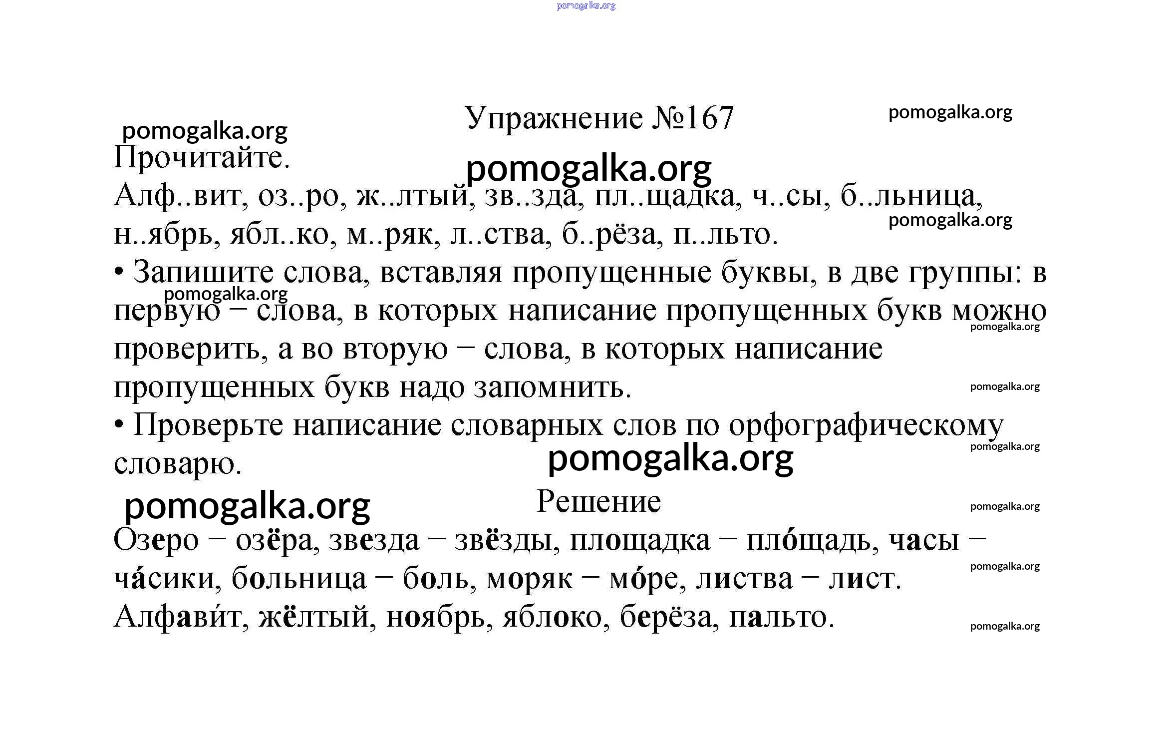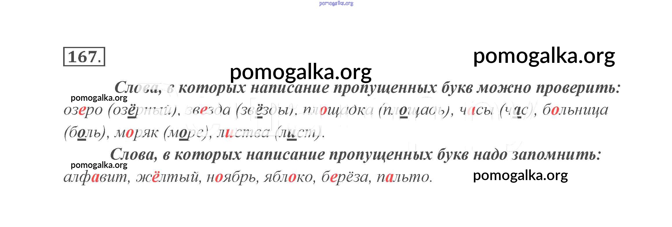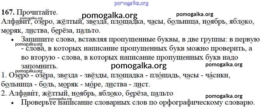 Готовые ответы - Русский язык 2 класс Канакина В.П. - часть №1 (упражнение) 167