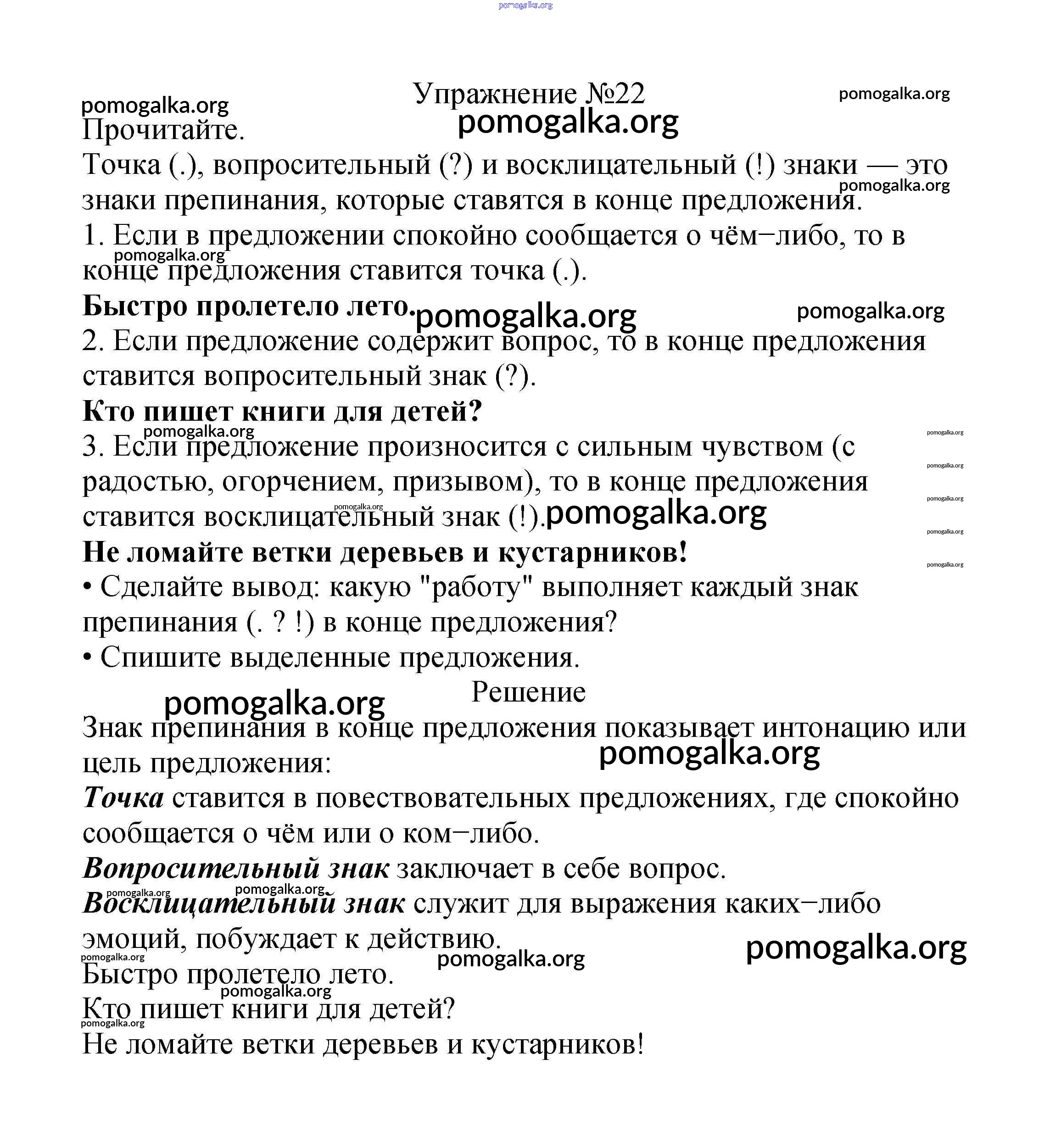 Готовые ответы - Русский язык 2 класс Канакина В.П. - часть №1 (упражнение) 22