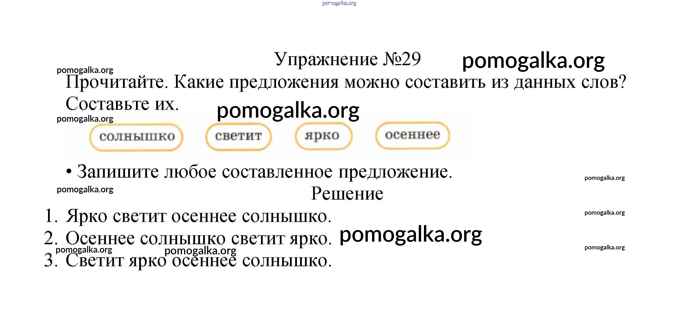 Готовые ответы - Русский язык 2 класс Канакина В.П. - часть №1 (упражнение) 29