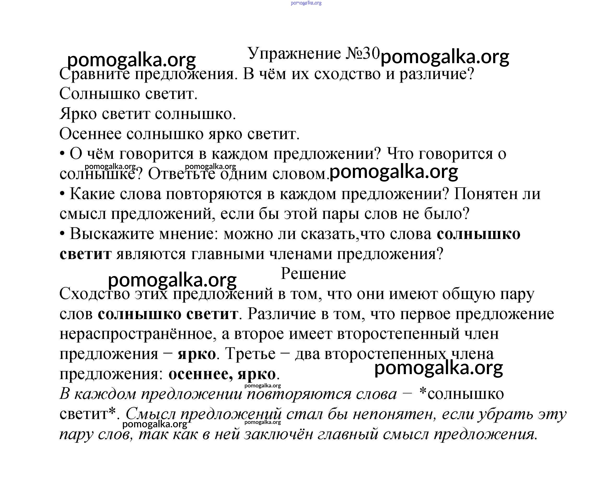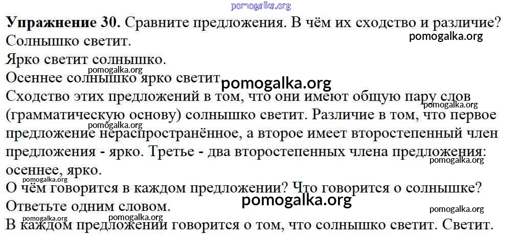 Готовые ответы - Русский язык 2 класс Канакина В.П. - часть №1 (упражнение) 30