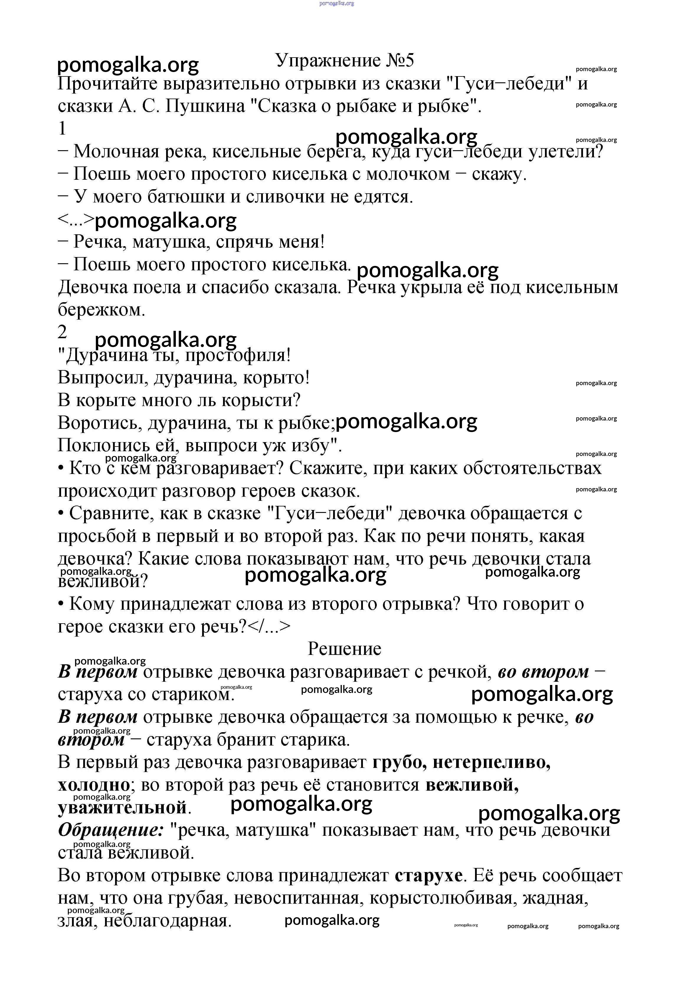 Готовые ответы - Русский язык 2 класс Канакина В.П. - часть №1 (упражнение) 5