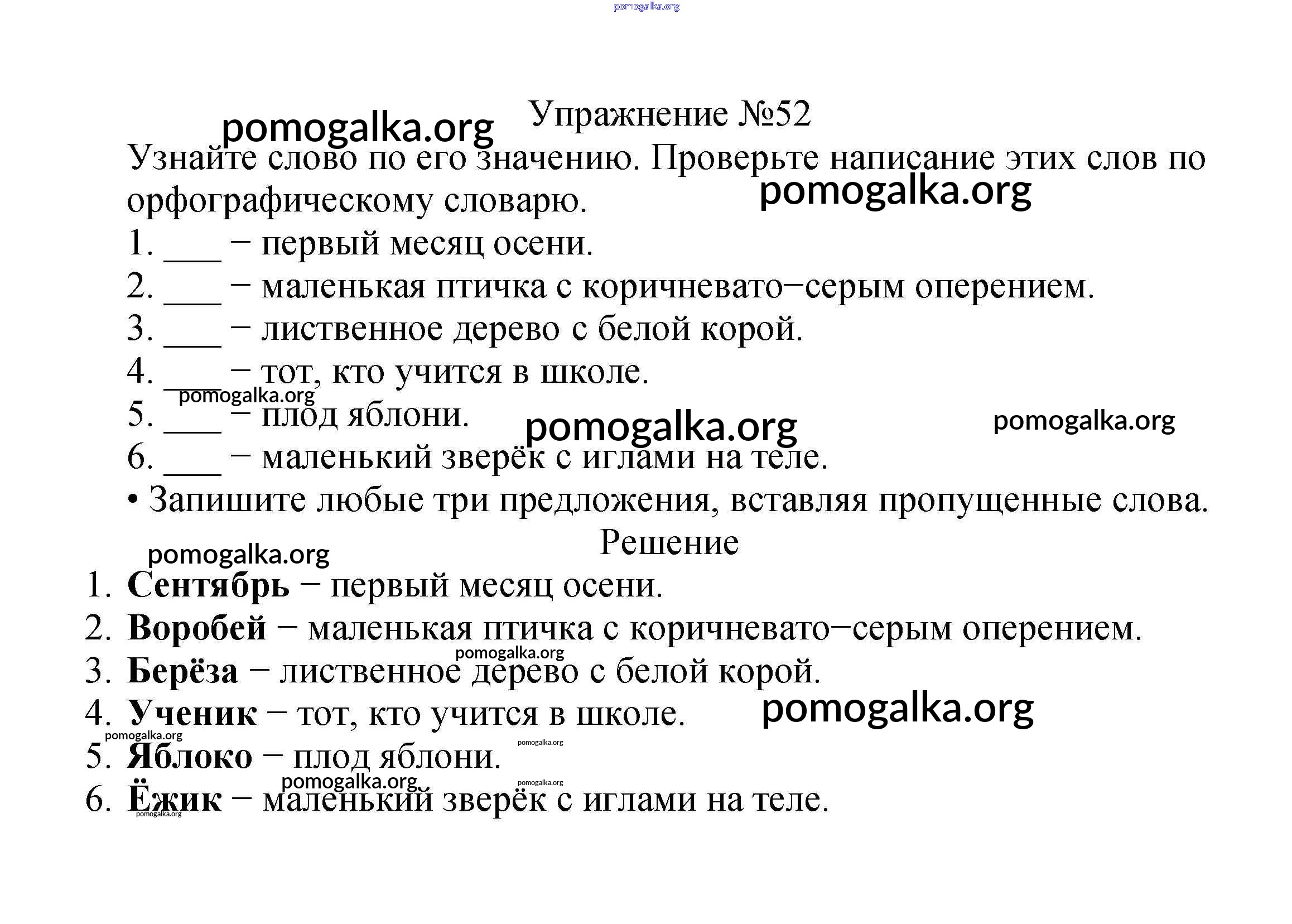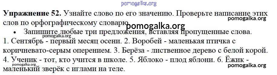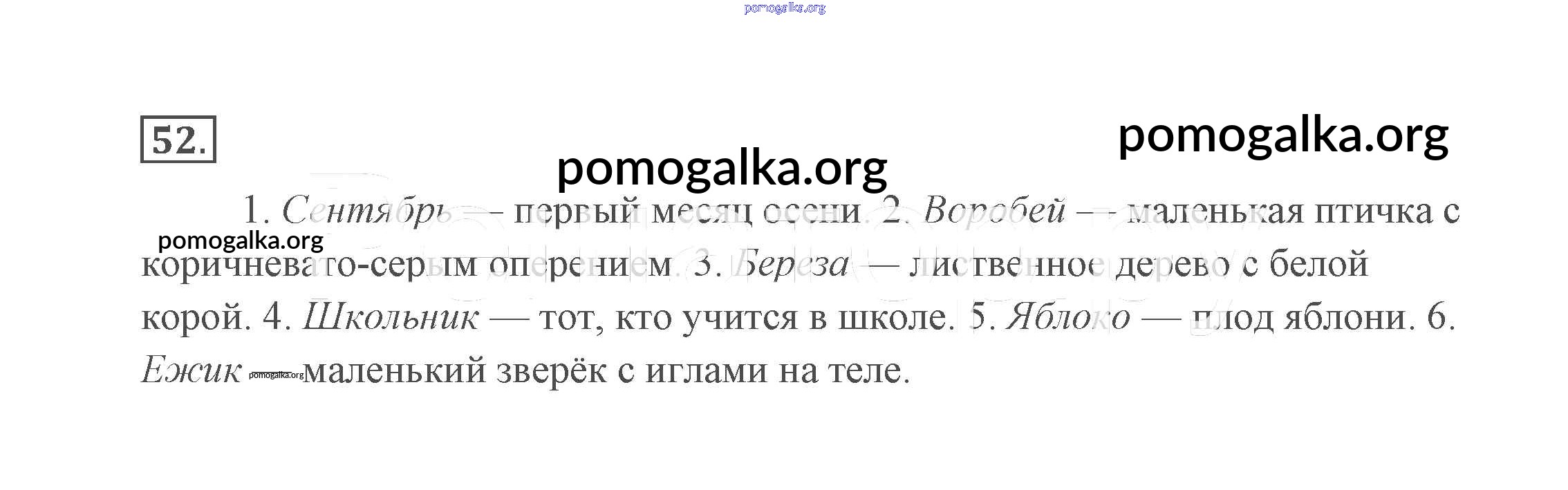 Готовые ответы - Русский язык 2 класс Канакина В.П. - часть №1 (упражнение) 52