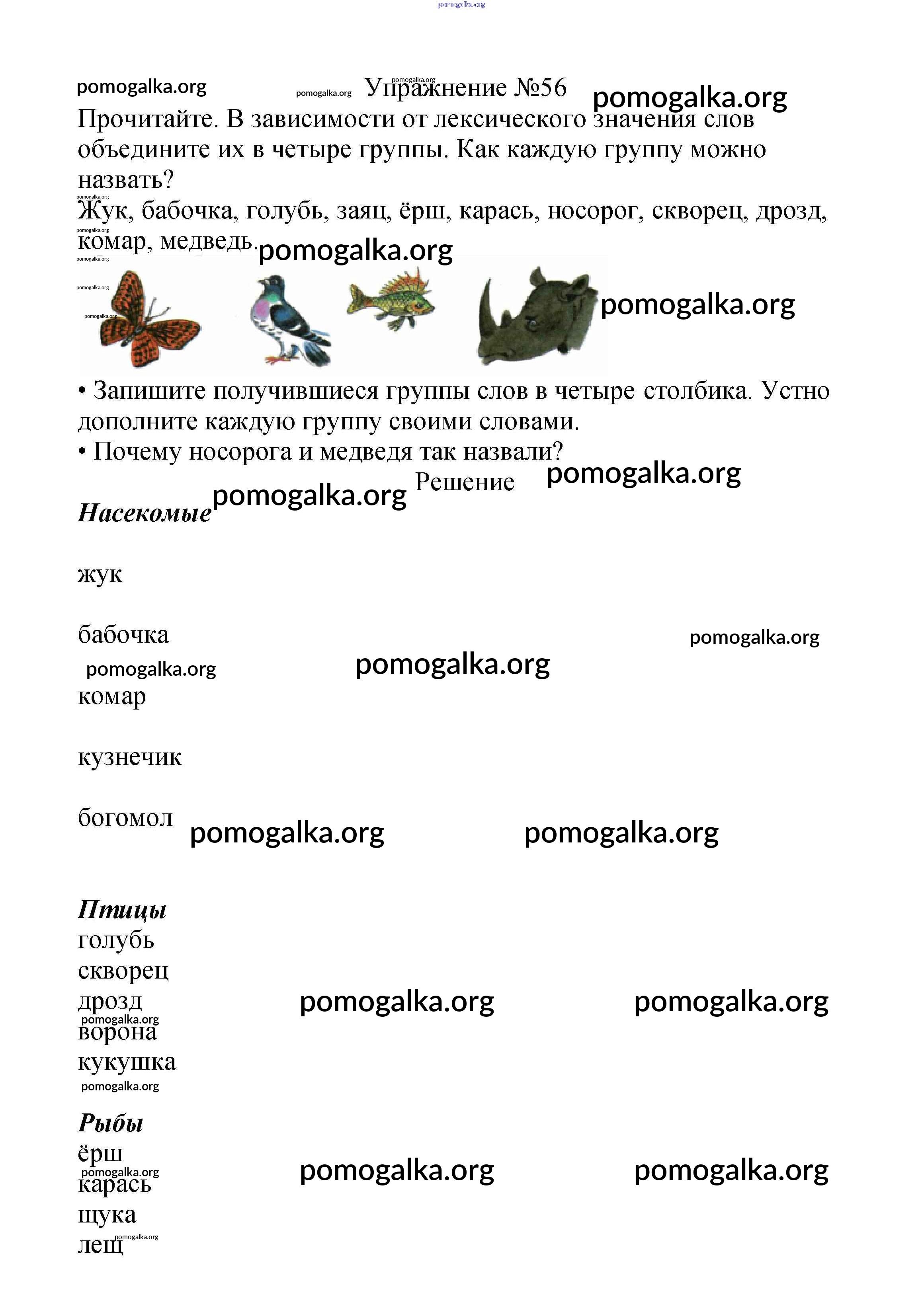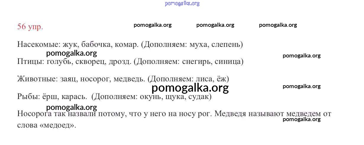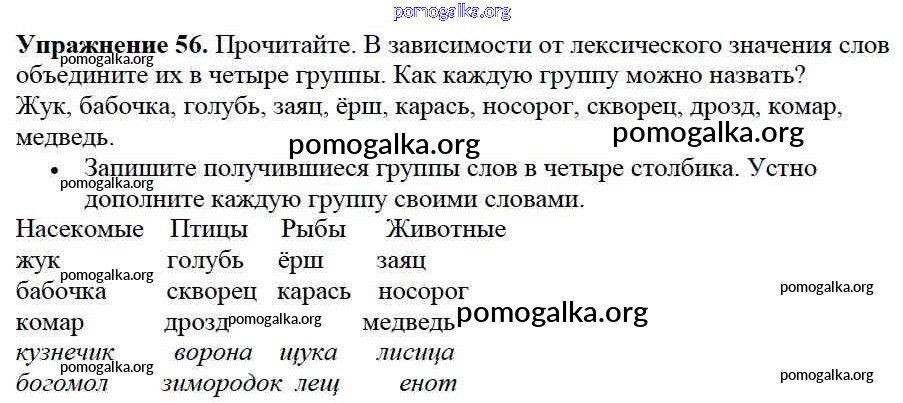 Готовые ответы - Русский язык 2 класс Канакина В.П. - часть №1 (упражнение) 56