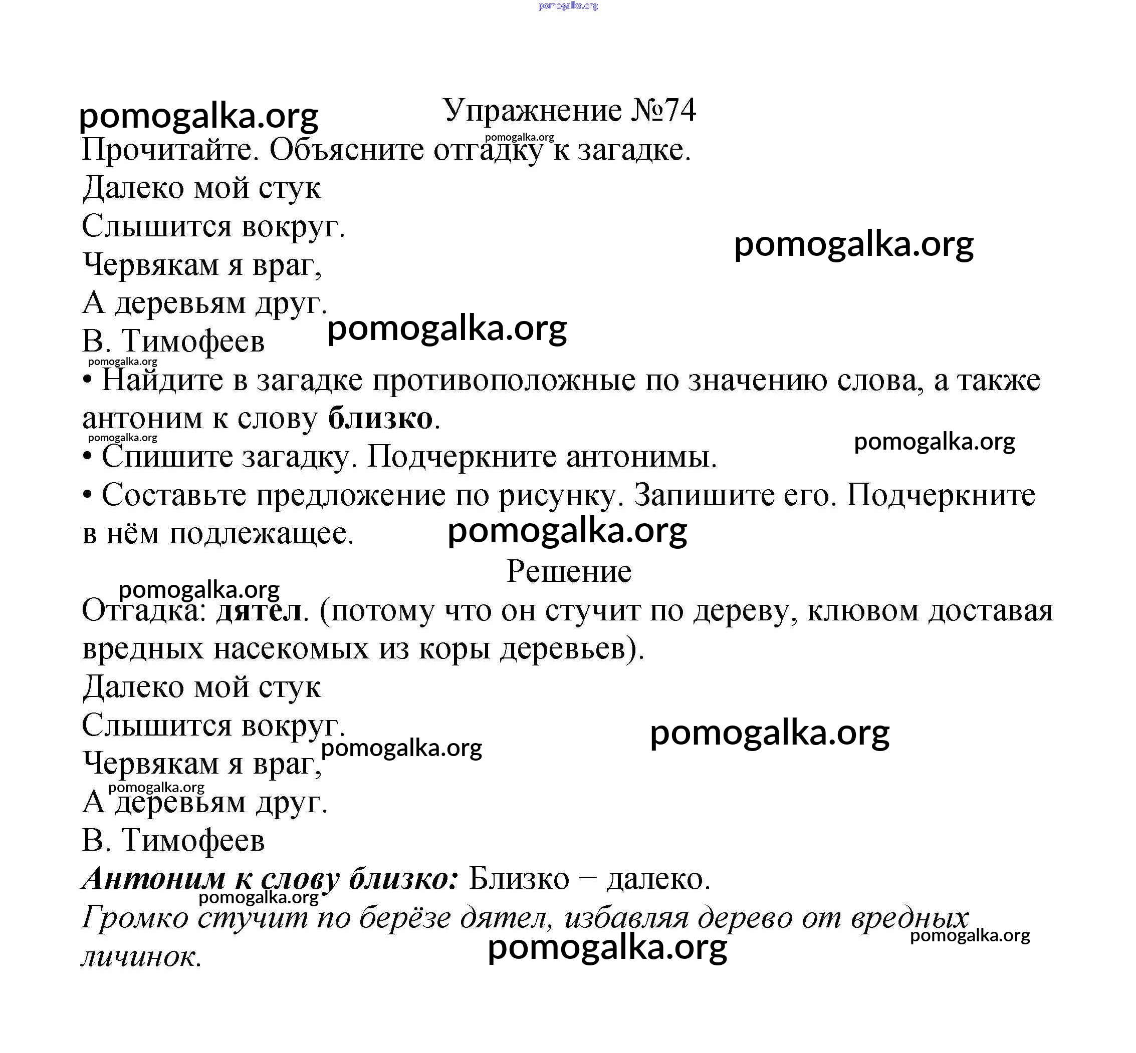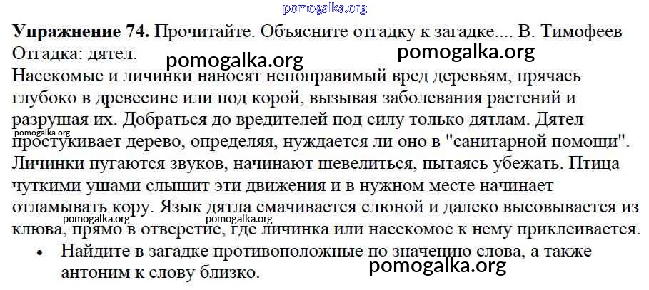 Готовые ответы - Русский язык 2 класс Канакина В.П. - часть №1 (упражнение) 74