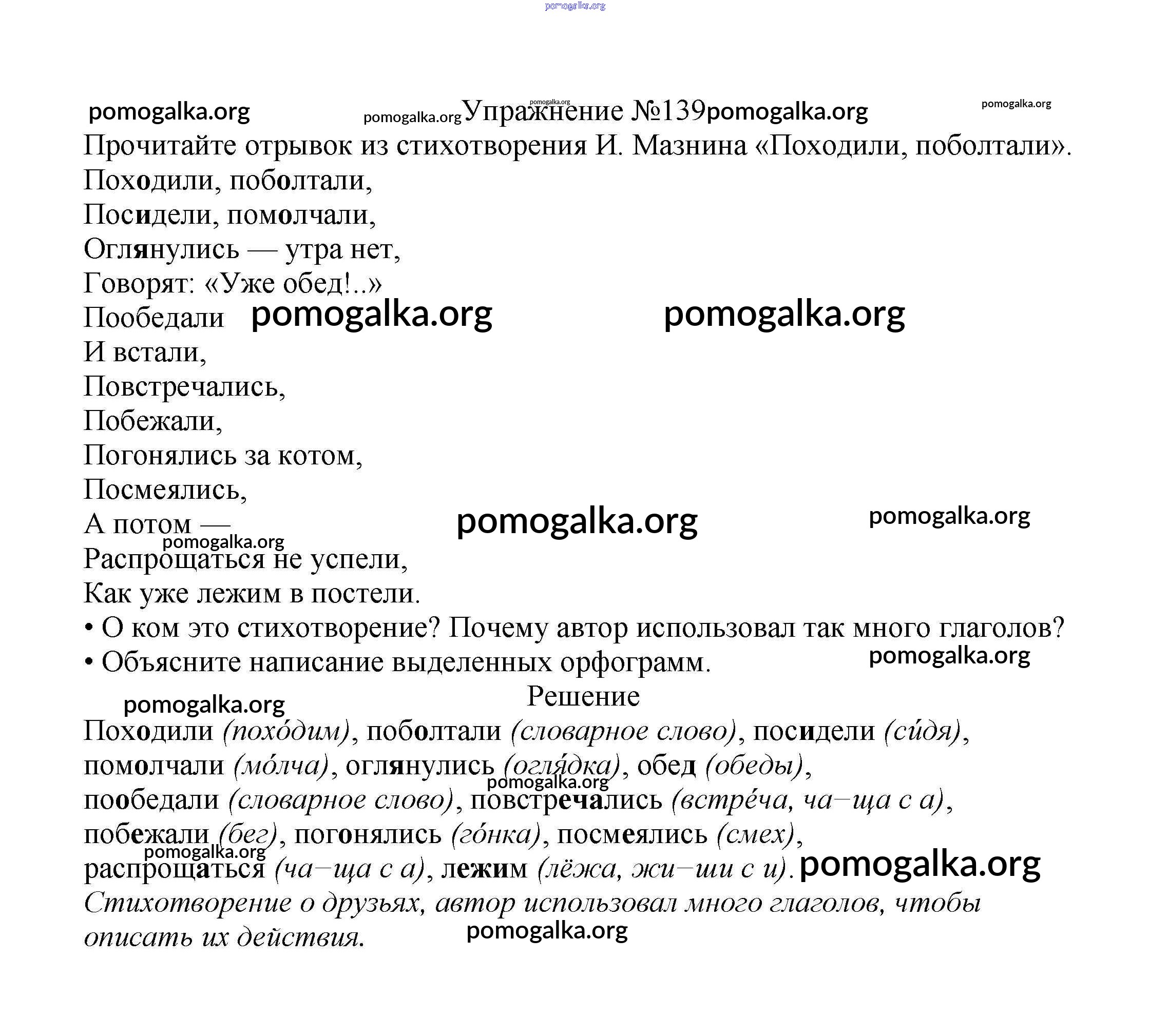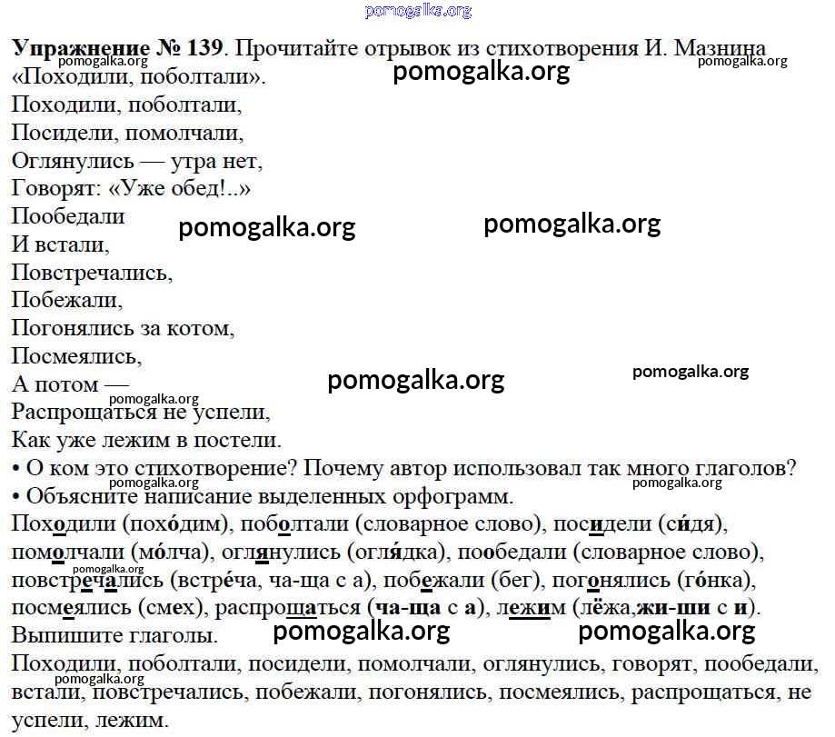 Готовые ответы - Русский язык 2 класс Канакина В.П. - часть №2 (упражнение) 139