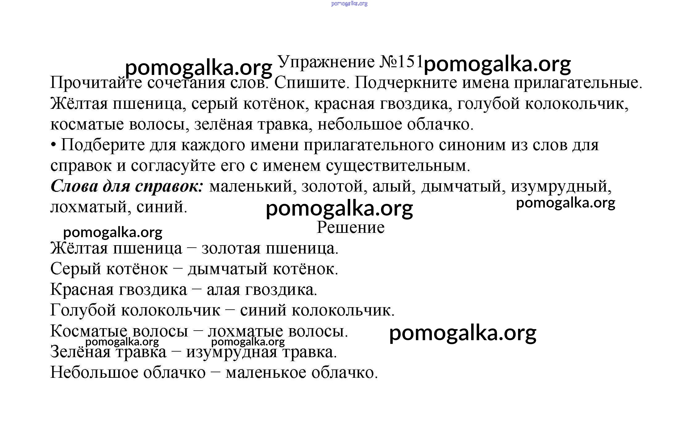 Готовые ответы - Русский язык 2 класс Канакина В.П. - часть №2 (упражнение) 151