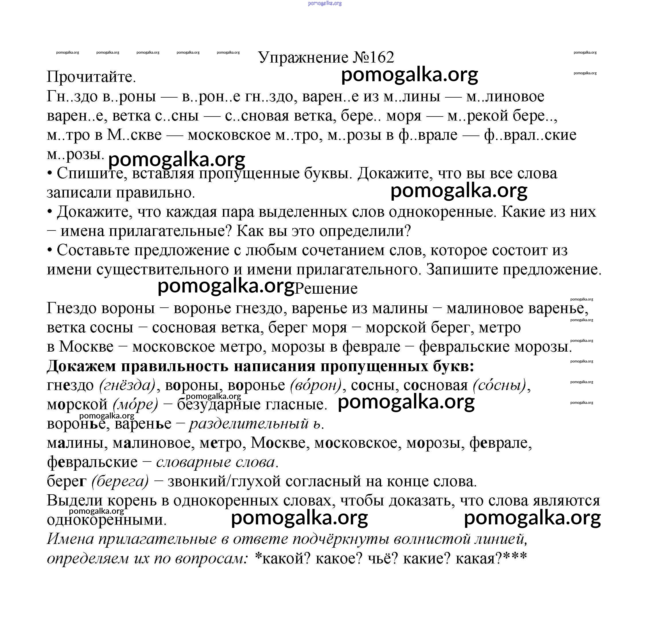 Готовые ответы - Русский язык 2 класс Канакина В.П. - часть №2 (упражнение) 162