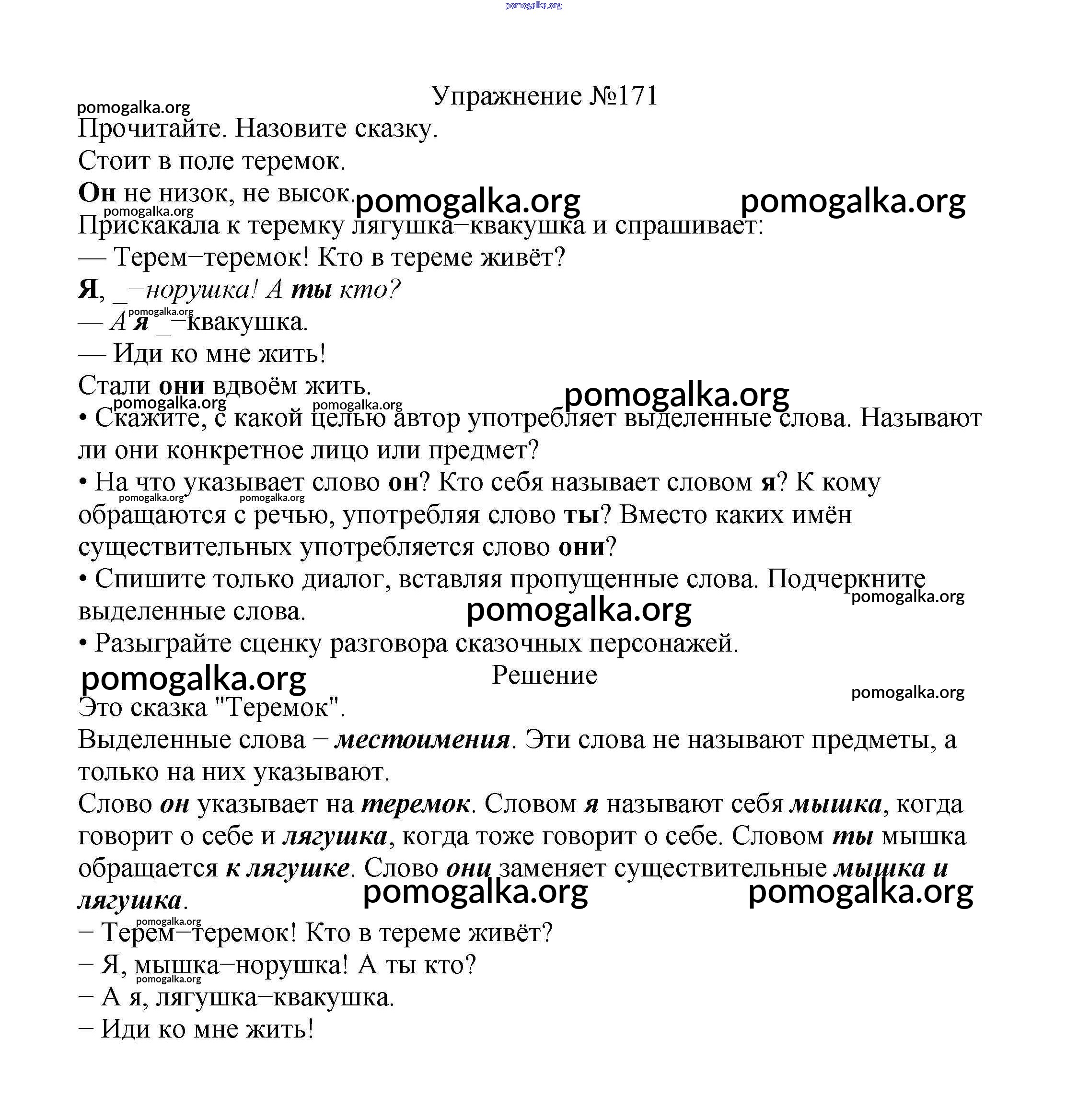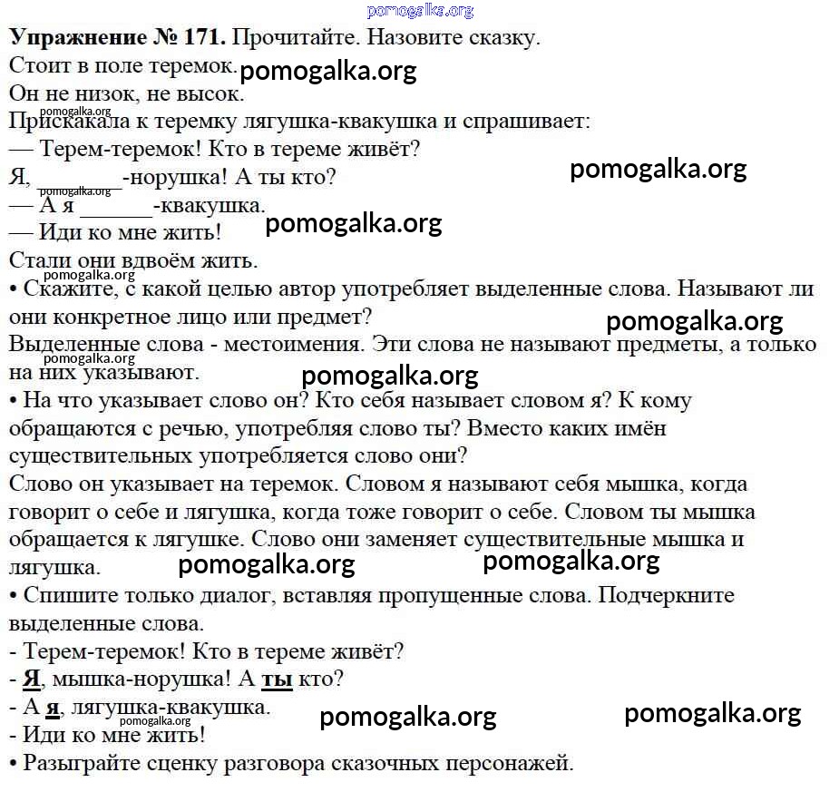 Готовые ответы - Русский язык 2 класс Канакина В.П. - часть №2 (упражнение) 171
