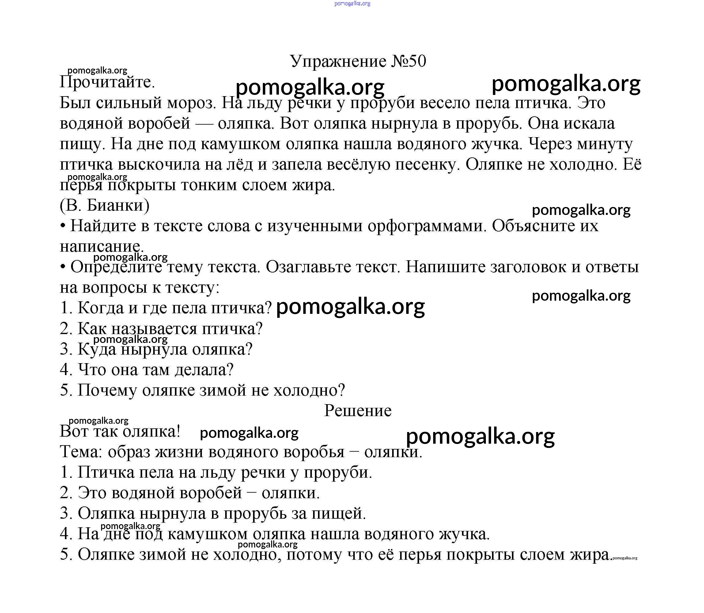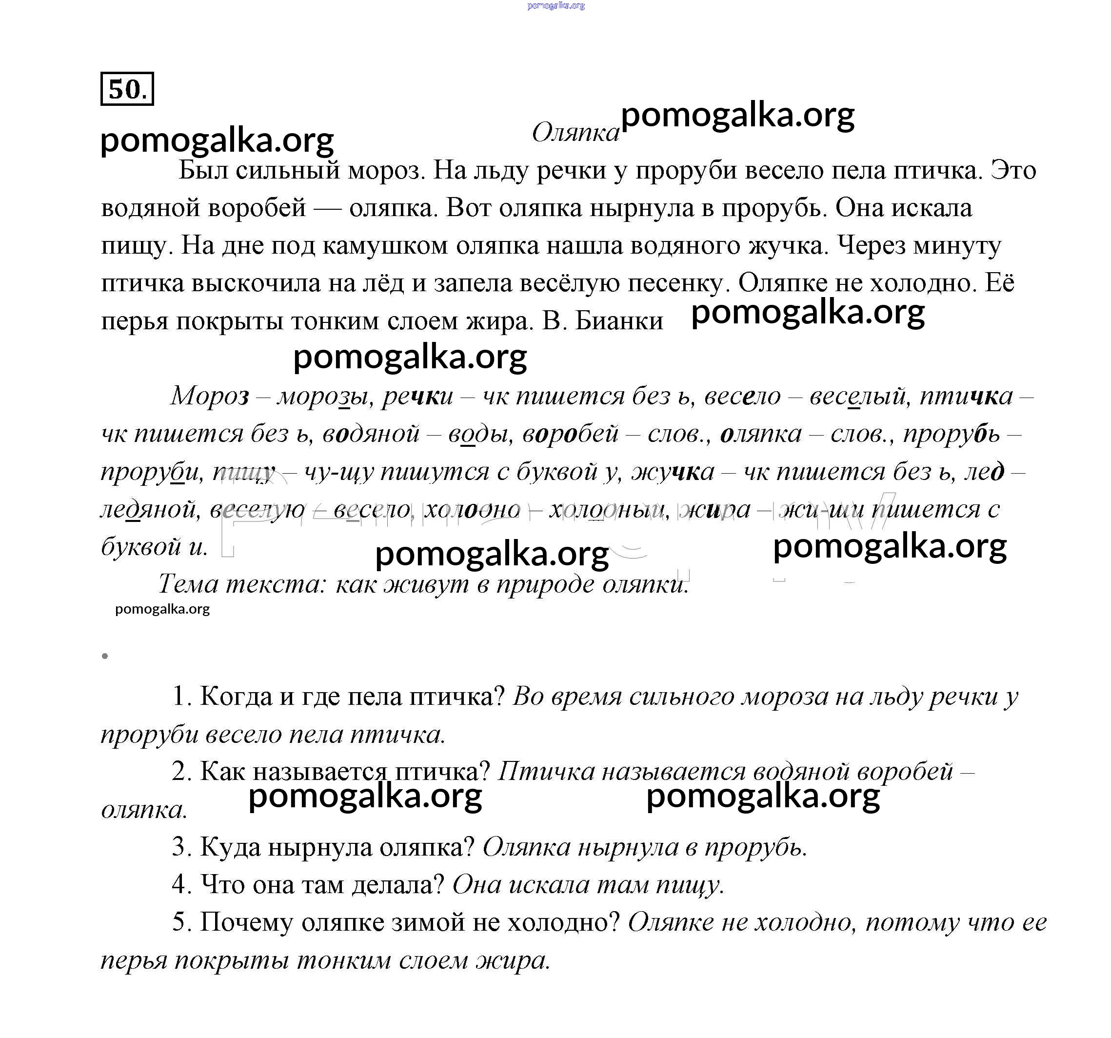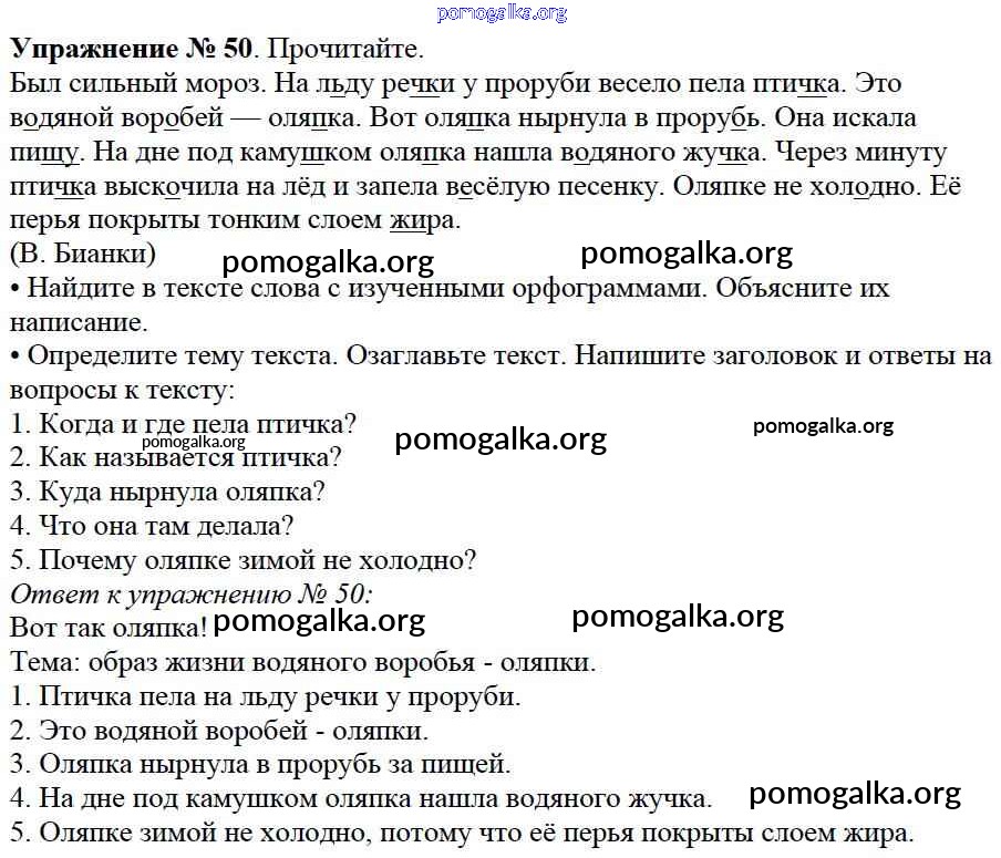 Готовые ответы - Русский язык 2 класс Канакина В.П. - часть №2 (упражнение) 50