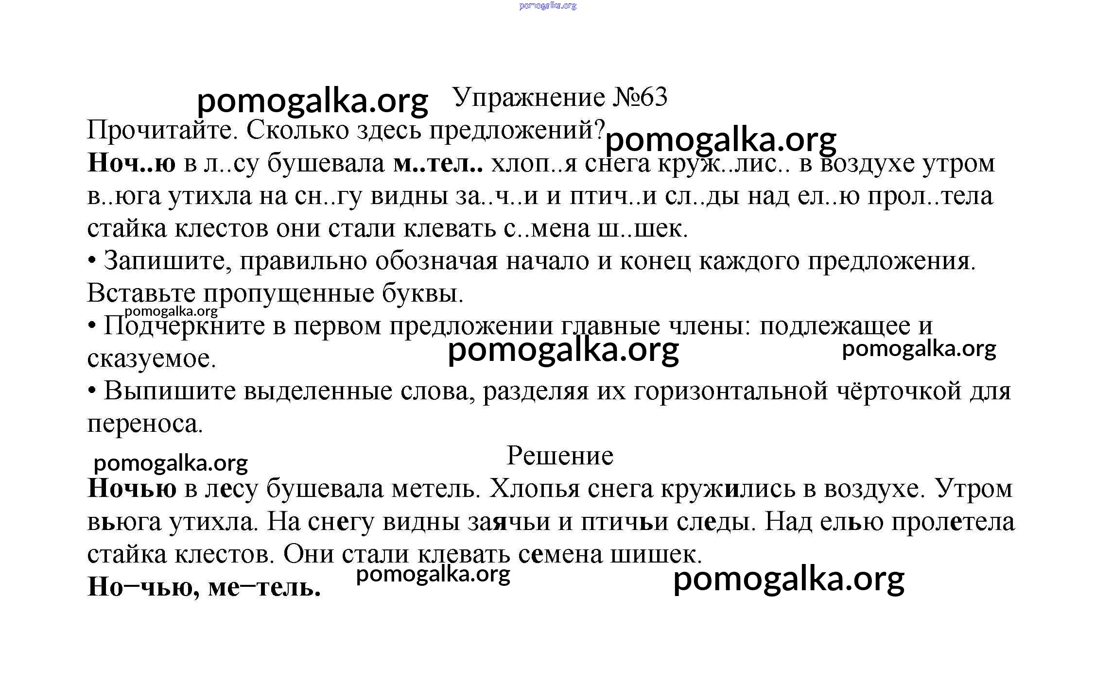 Готовые ответы - Русский язык 2 класс Канакина В.П. - часть №2 (упражнение) 63
