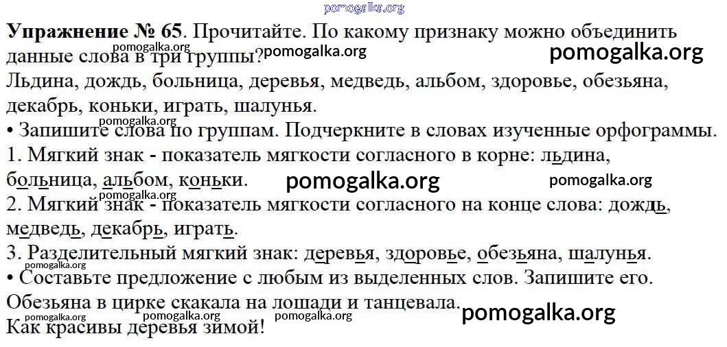 Готовые ответы - Русский язык 2 класс Канакина В.П. - часть №2 (упражнение) 65