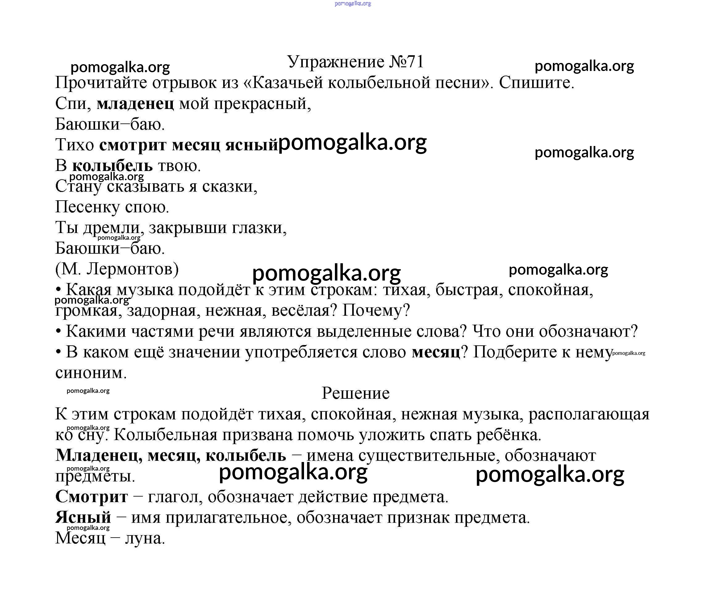 Готовые ответы - Русский язык 2 класс Канакина В.П. - часть №2 (упражнение) 71