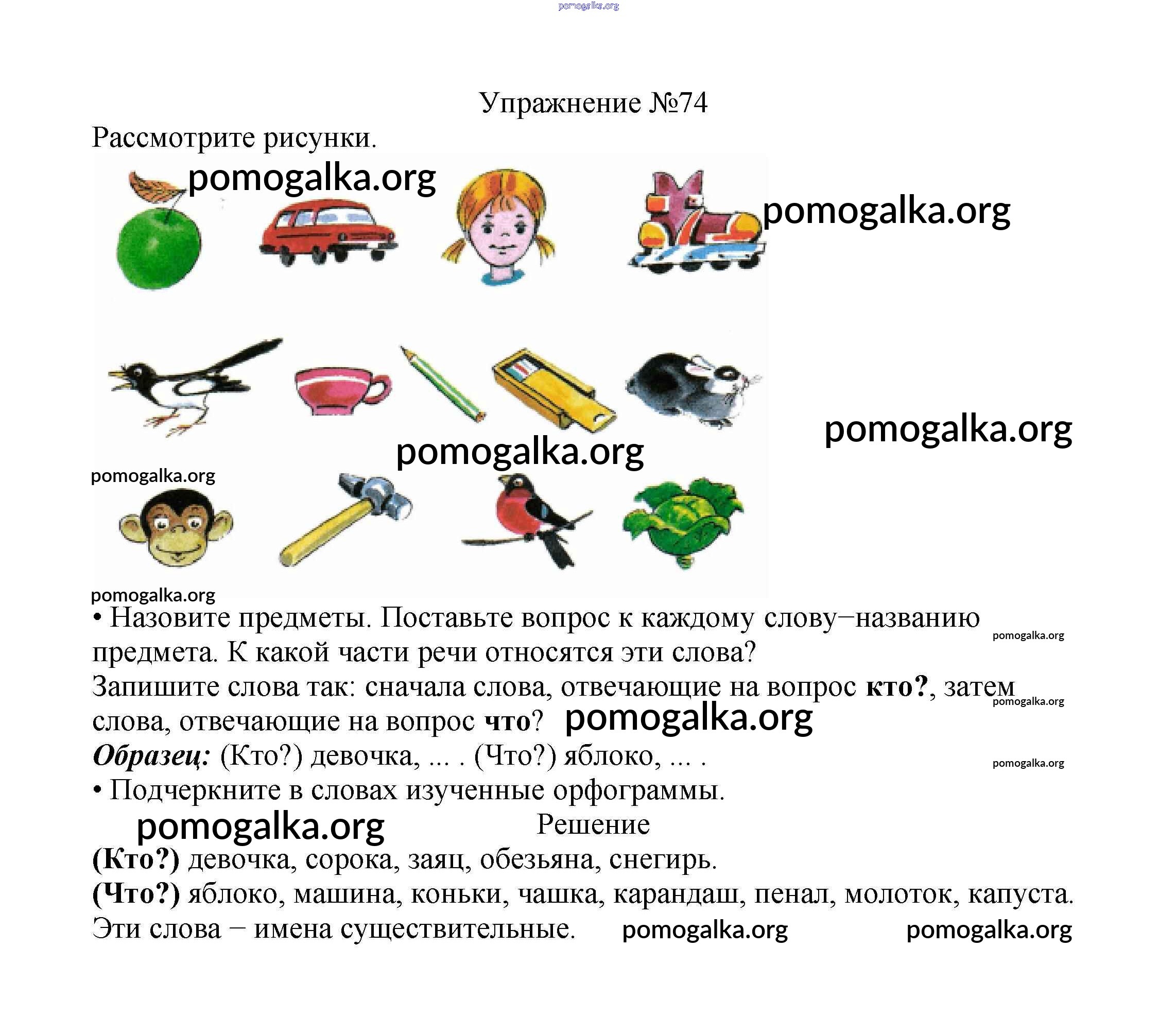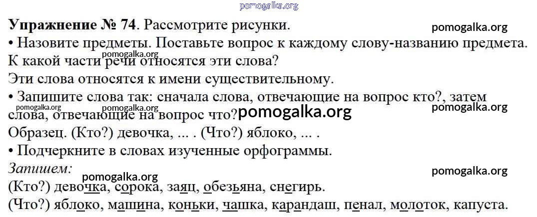 Готовые ответы - Русский язык 2 класс Канакина В.П. - часть №2 (упражнение) 74
