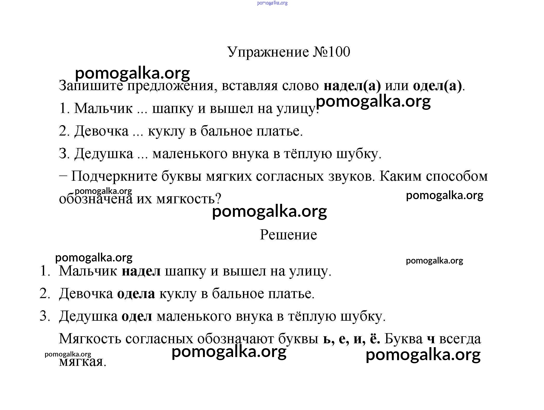 Готовые ответы - Русский язык 2 класс Климанова - упражнение часть 1 100