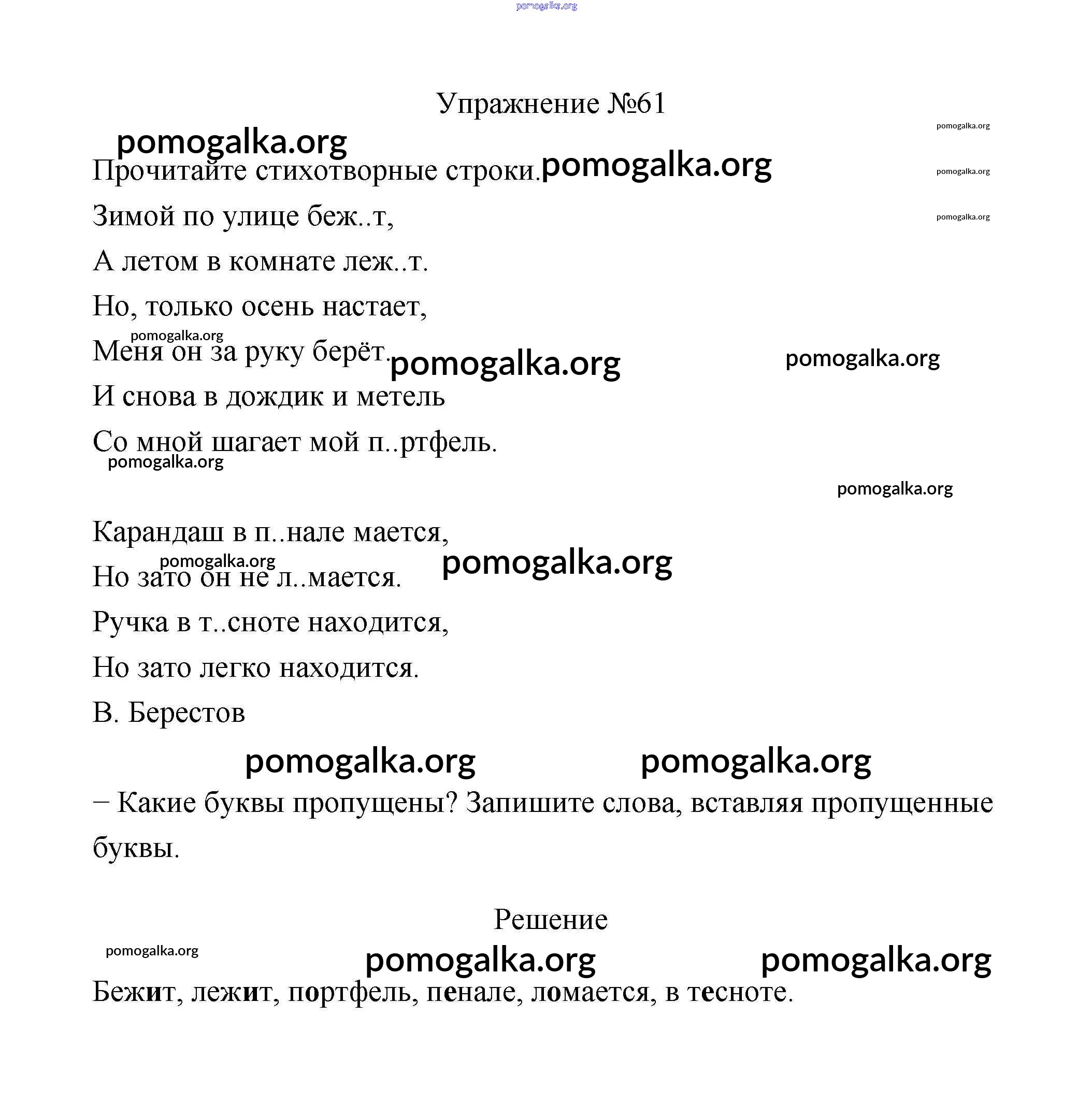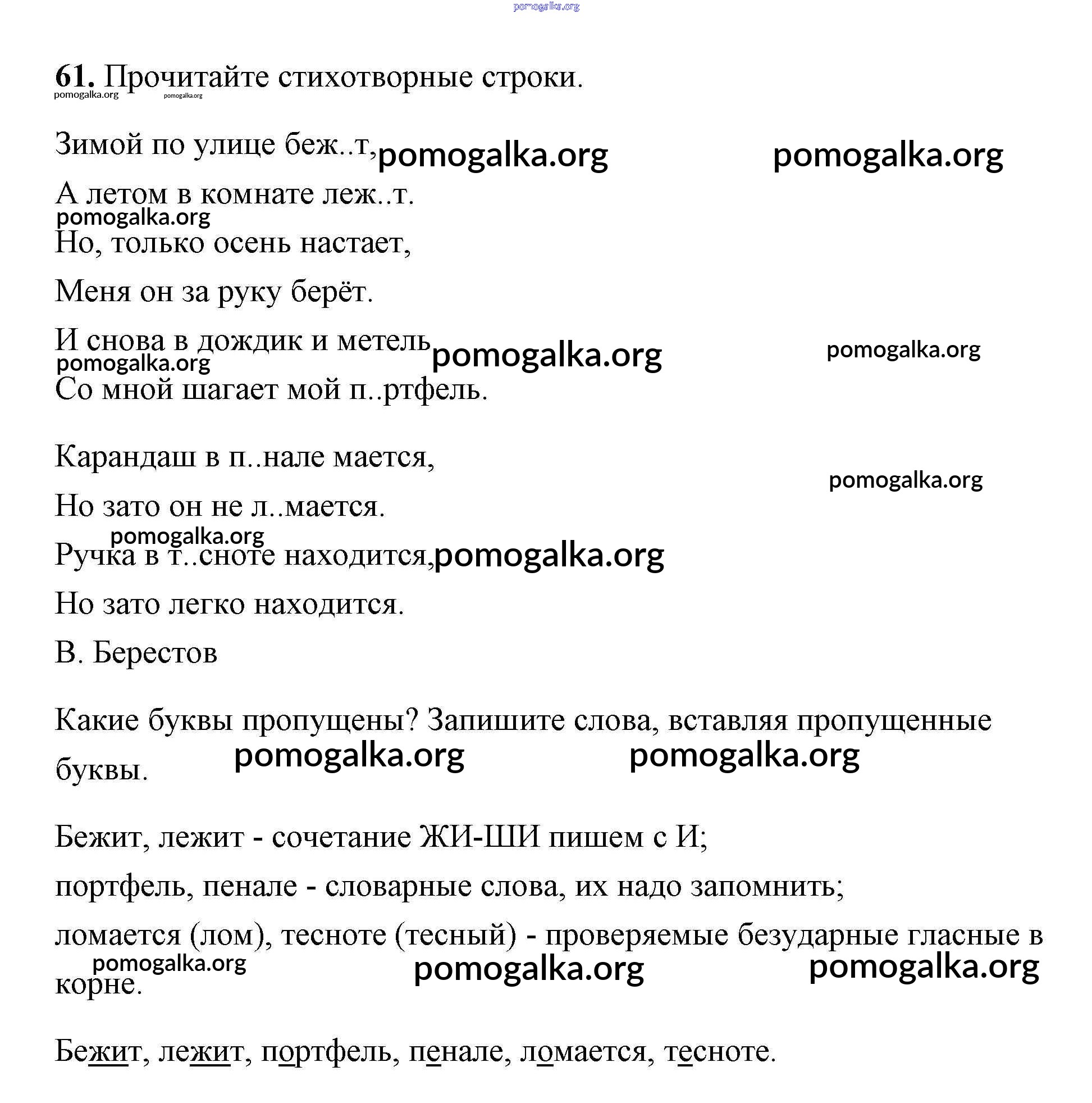 Готовые ответы - Русский язык 2 класс Климанова - упражнение часть 1 61