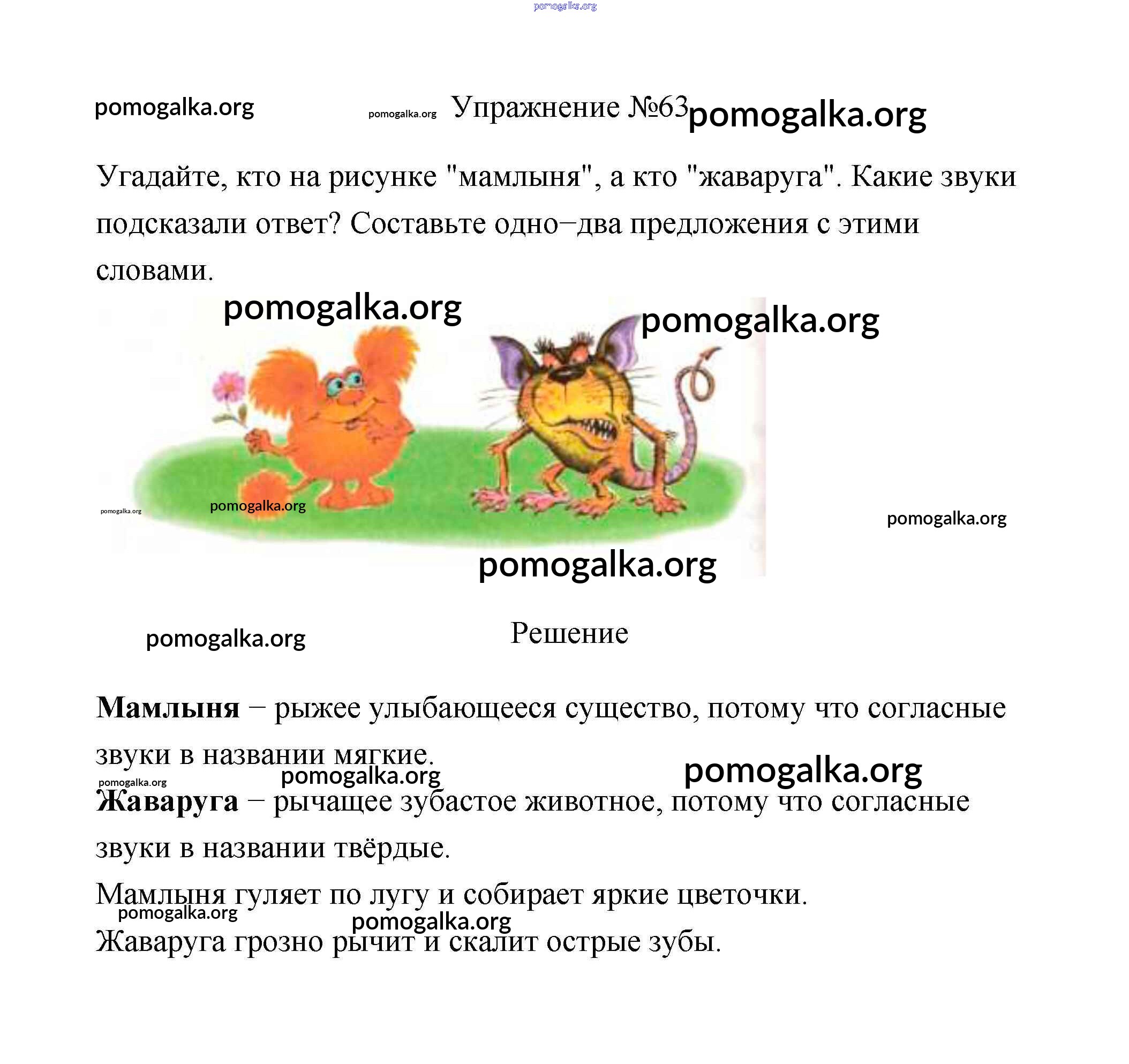 Готовые ответы - Русский язык 2 класс Климанова - упражнение часть 1 63