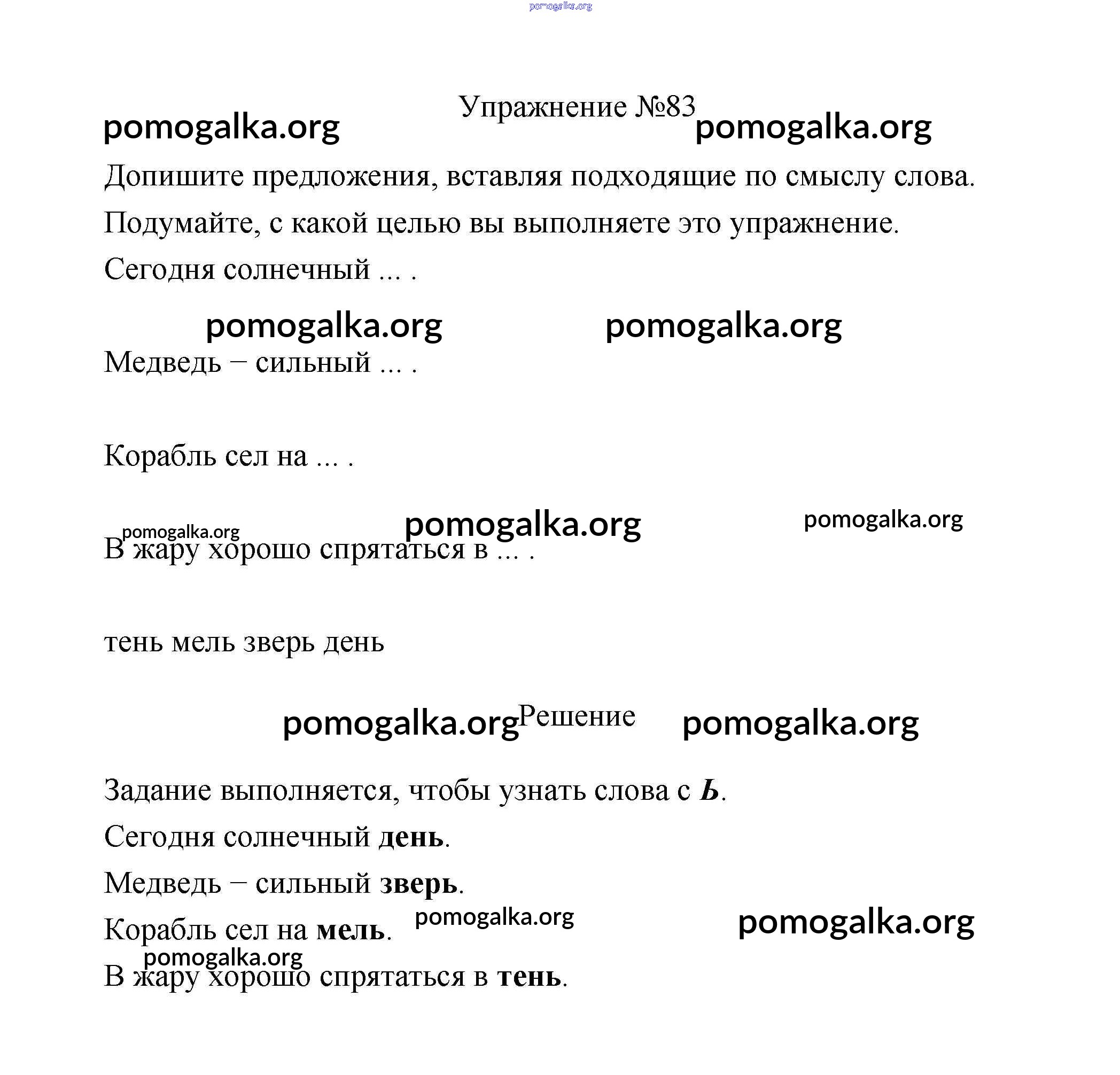 Готовые ответы - Русский язык 2 класс Климанова - упражнение часть 1 83
