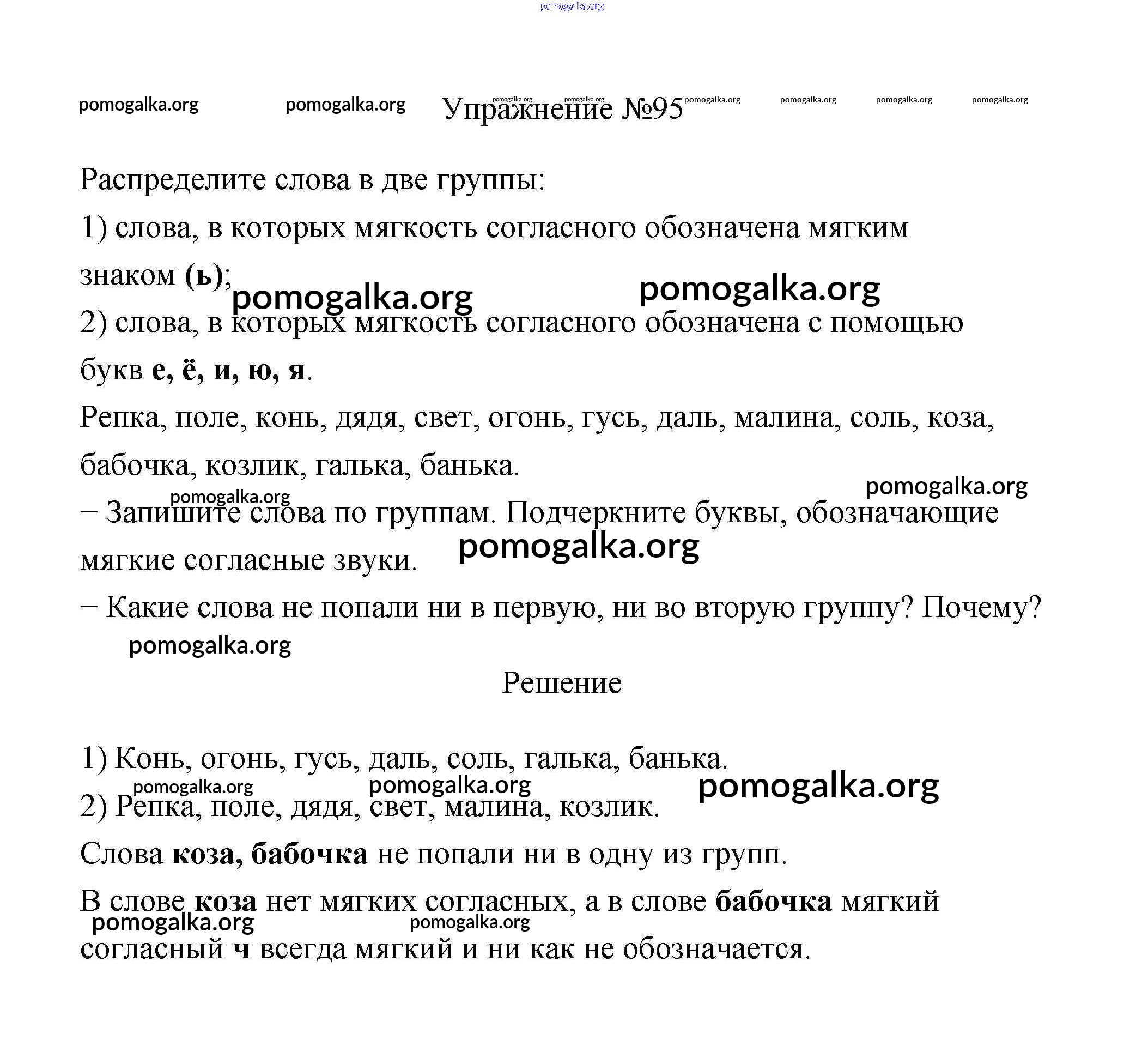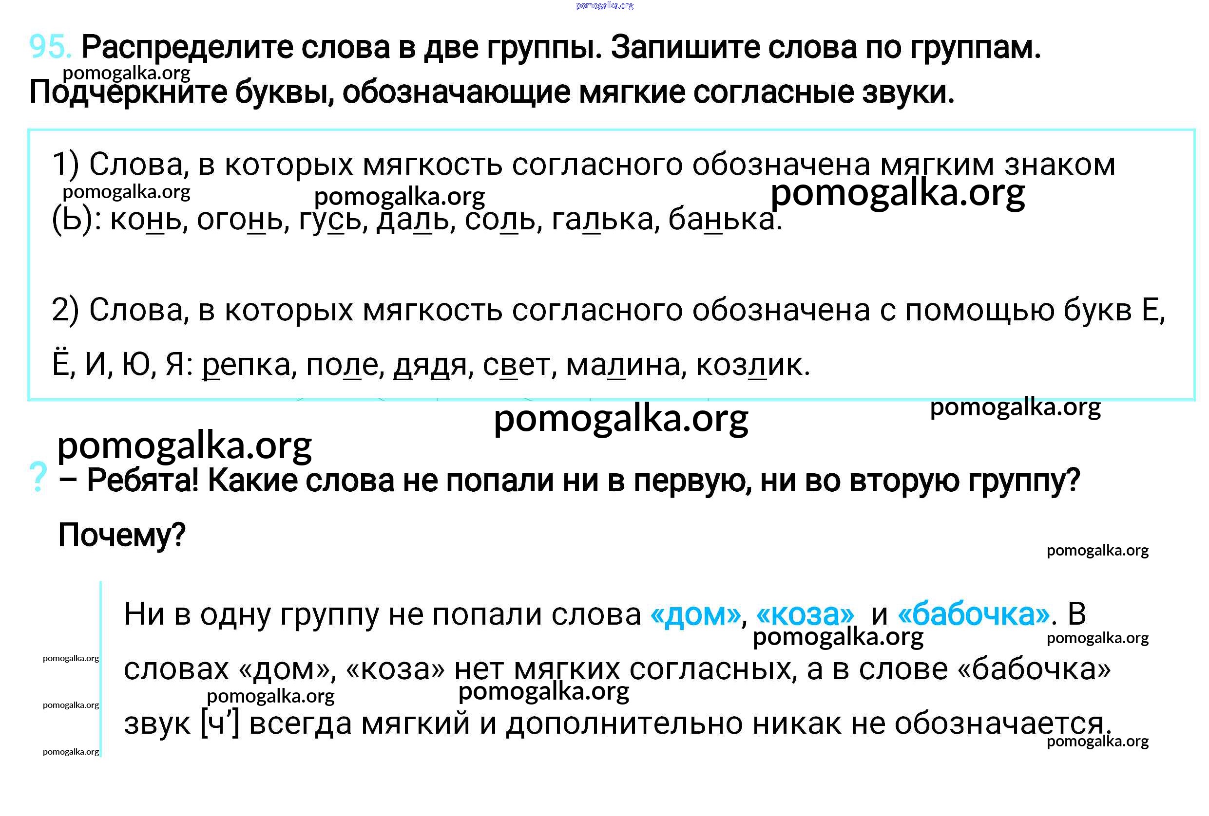 Готовые ответы - Русский язык 2 класс Климанова - упражнение часть 1 95