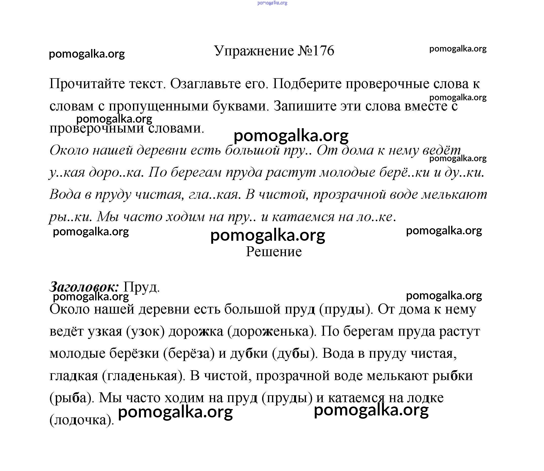 Готовые ответы - Русский язык 2 класс Климанова - упражнение часть 1 176