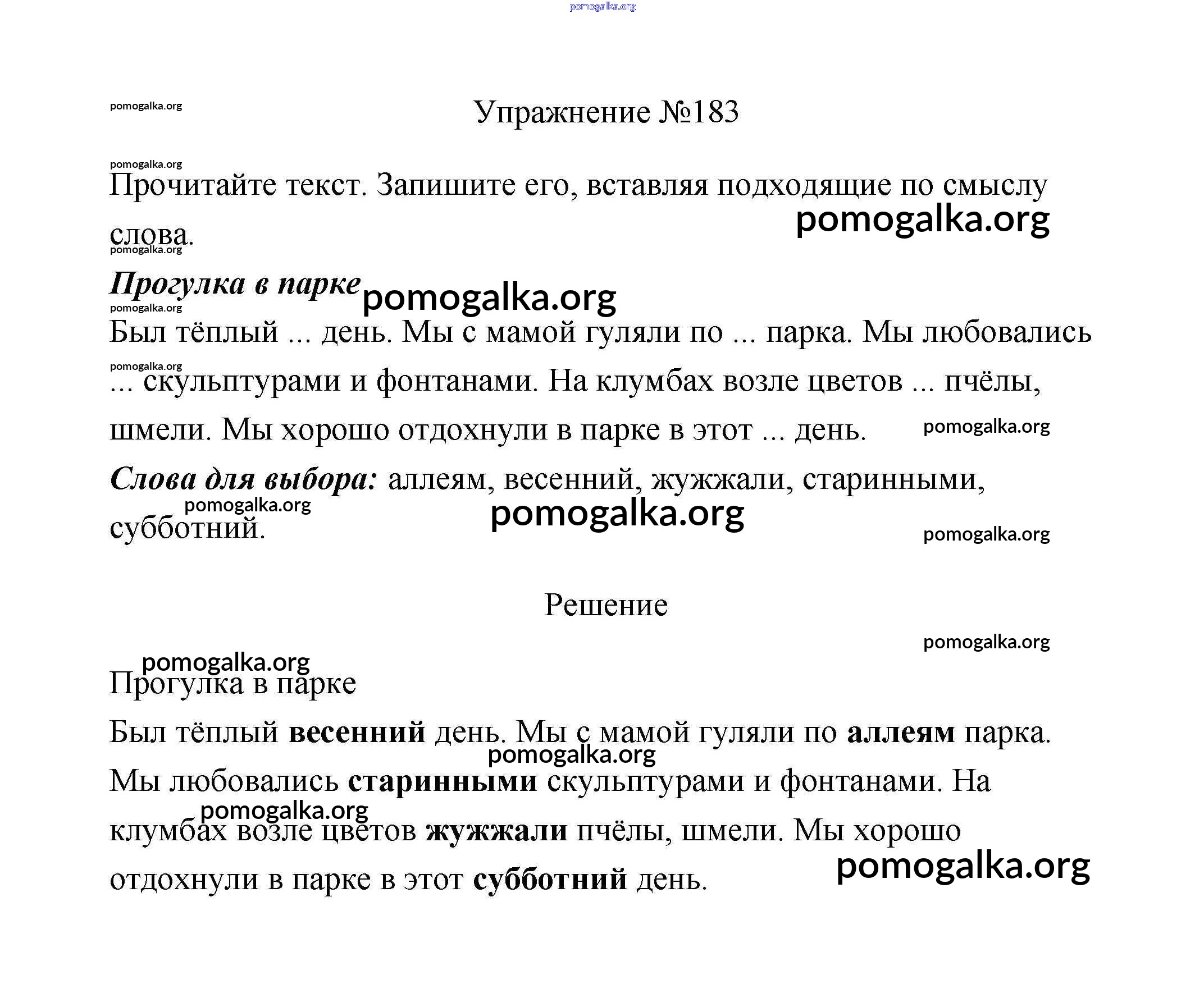 Готовые ответы - Русский язык 2 класс Климанова - упражнение часть 1 183