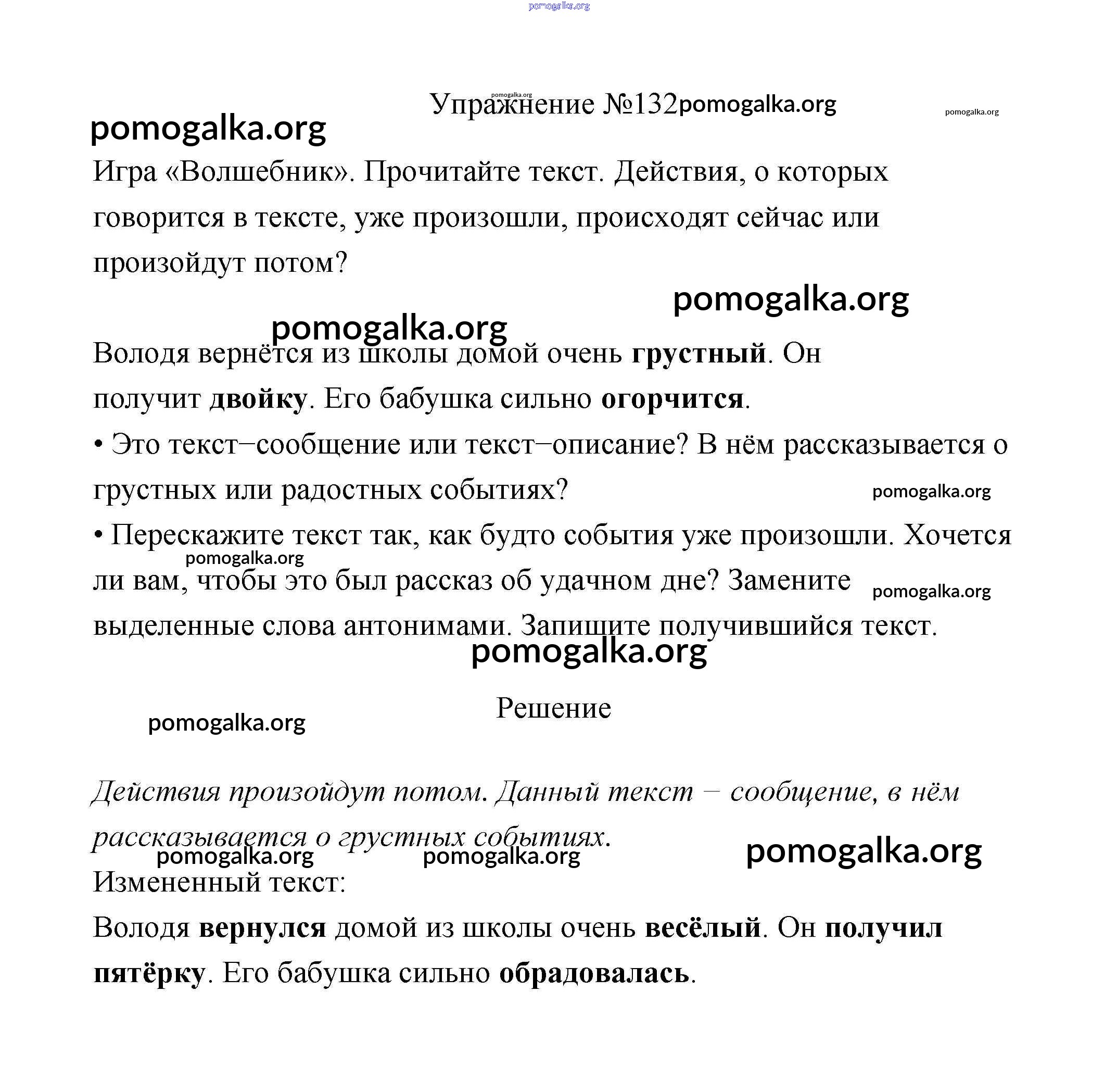 Готовые ответы - Русский язык 2 класс Климанова - упражнение часть 2 132
