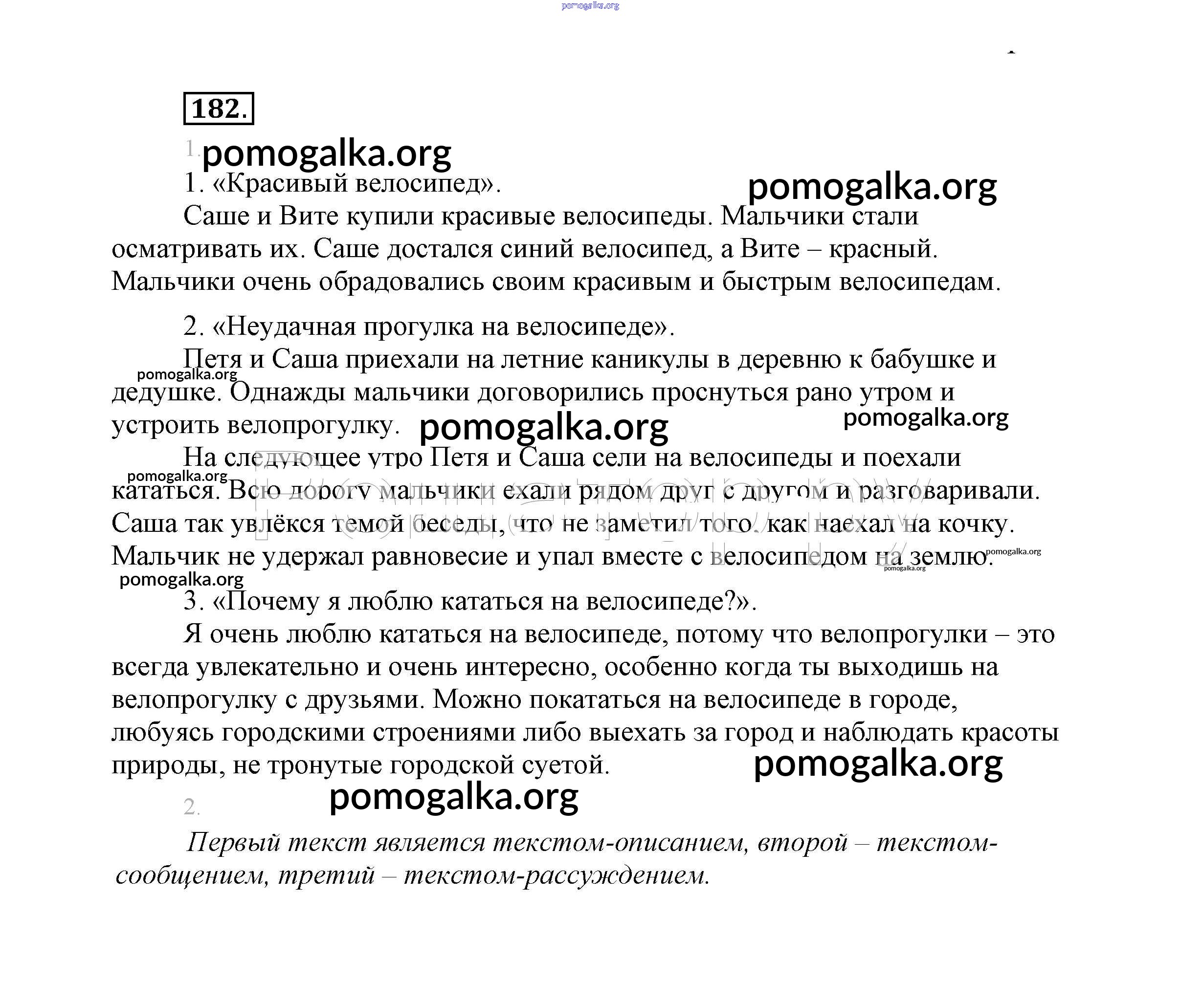 Готовые ответы - Русский язык 2 класс Климанова - упражнение часть 2 182