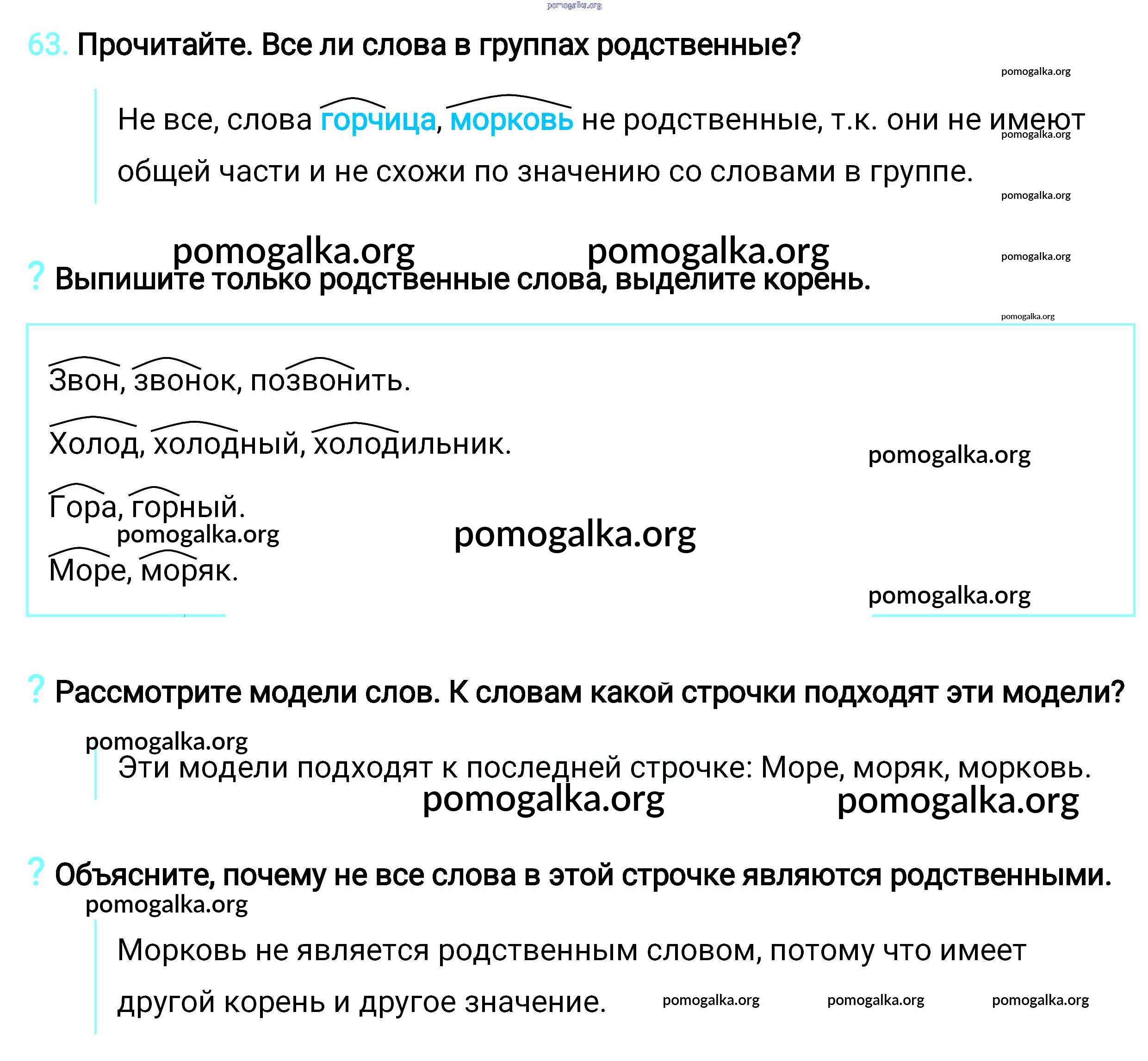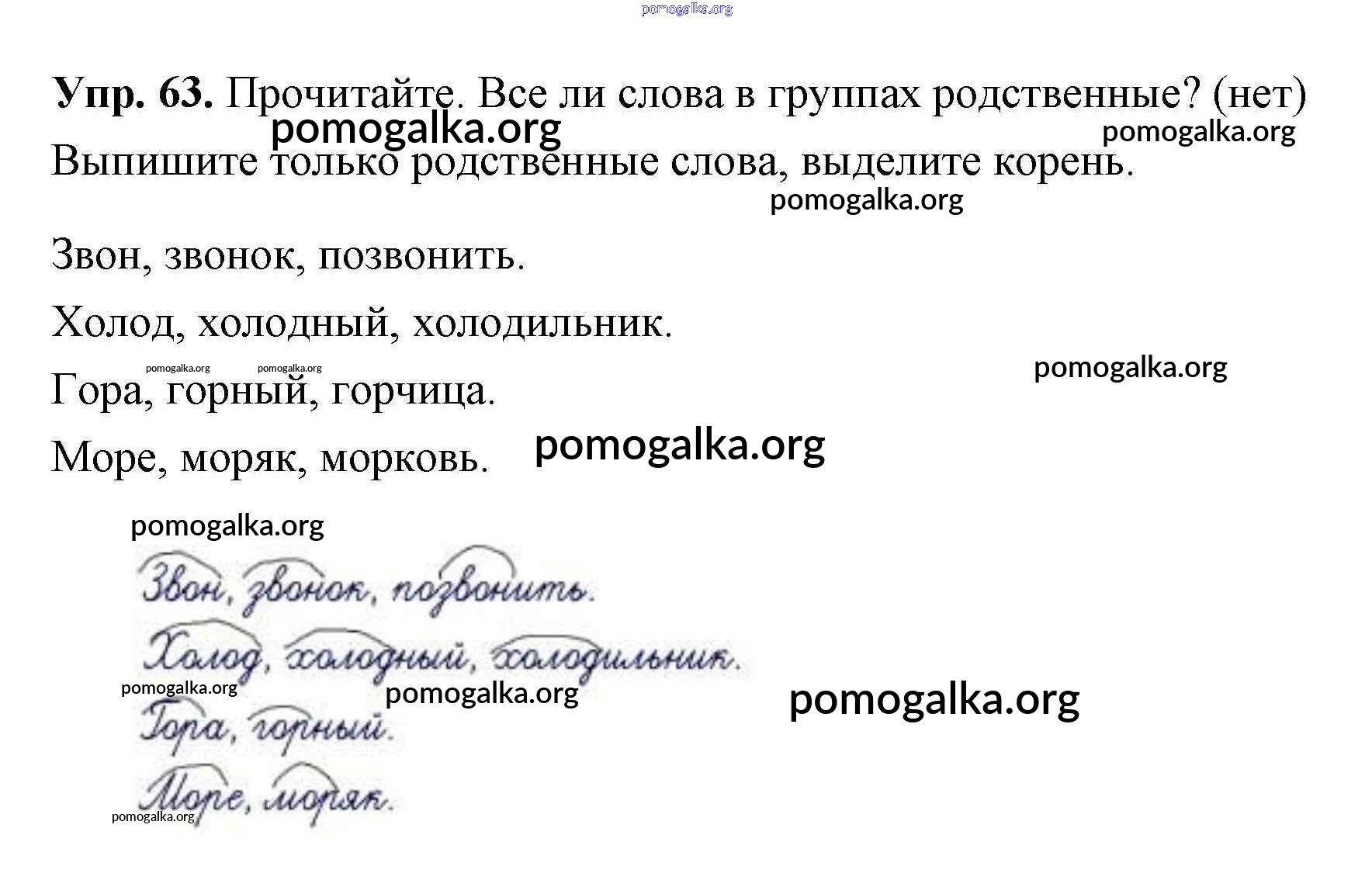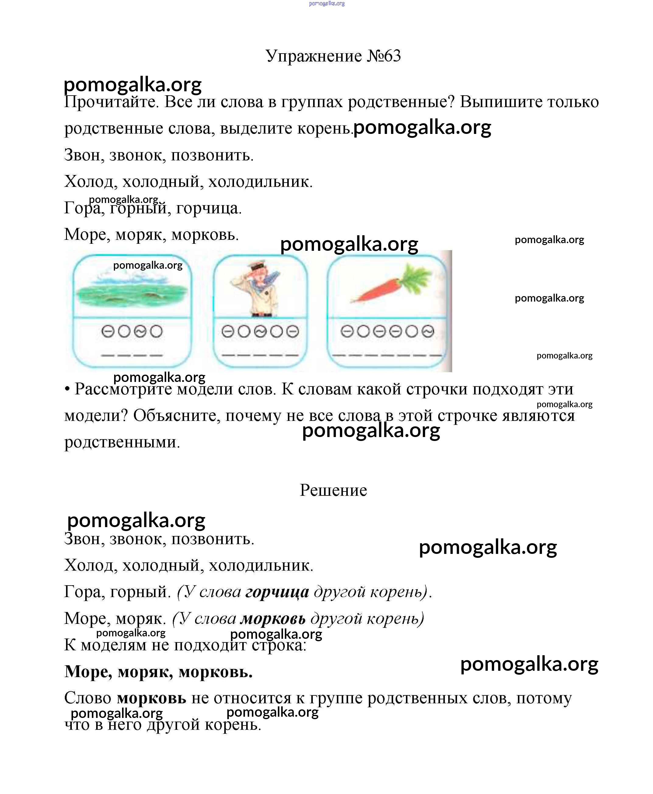 Готовые ответы - Русский язык 2 класс Климанова - упражнение часть 2 63